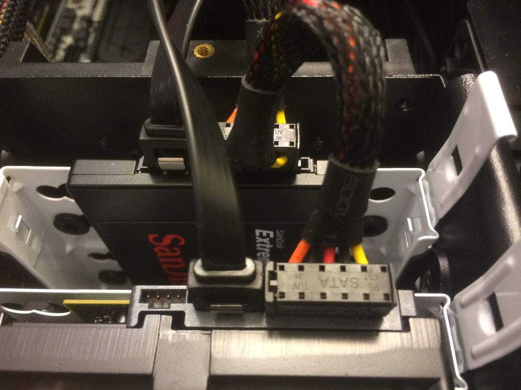 Having put all of the components onto the board, it was now time to plug everything in. This was easily the most tedious task, and really, the only challenging thing about the entire process. It still wasn’t hard, it just took a lot of reading and brain power. After triple-checking that everything was plugged into the correct port, I put the side of the case back on and prepared for the big test of whether it would power on or not. Sure enough, it did power on correctly the first time and it was off to the races to install OS X…