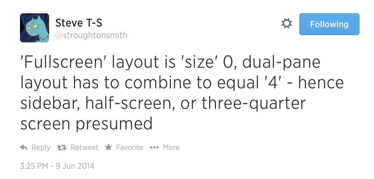 But I’m not sure how they could incorporate apps running on 3/4 of the screen. What would they look like?