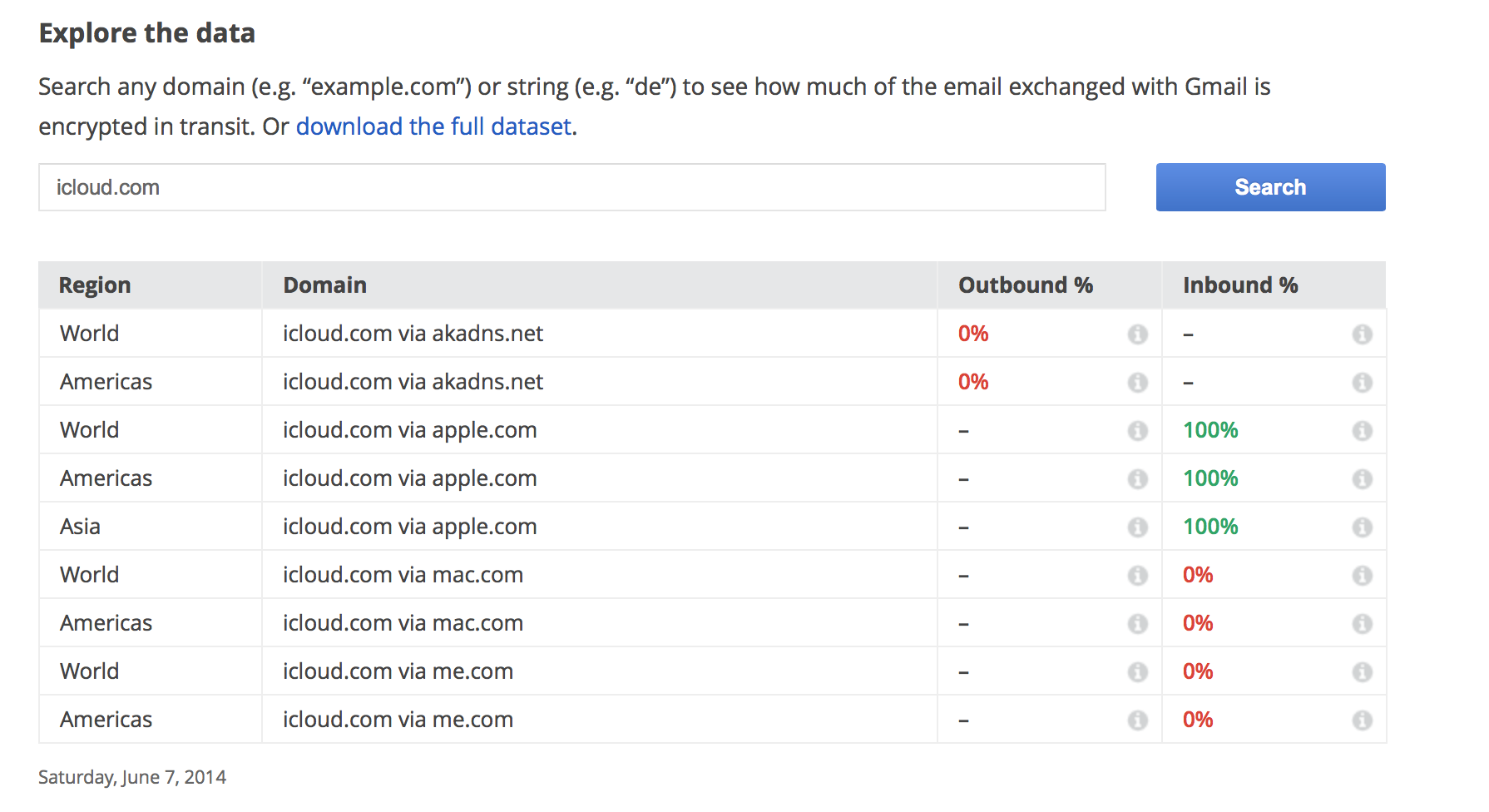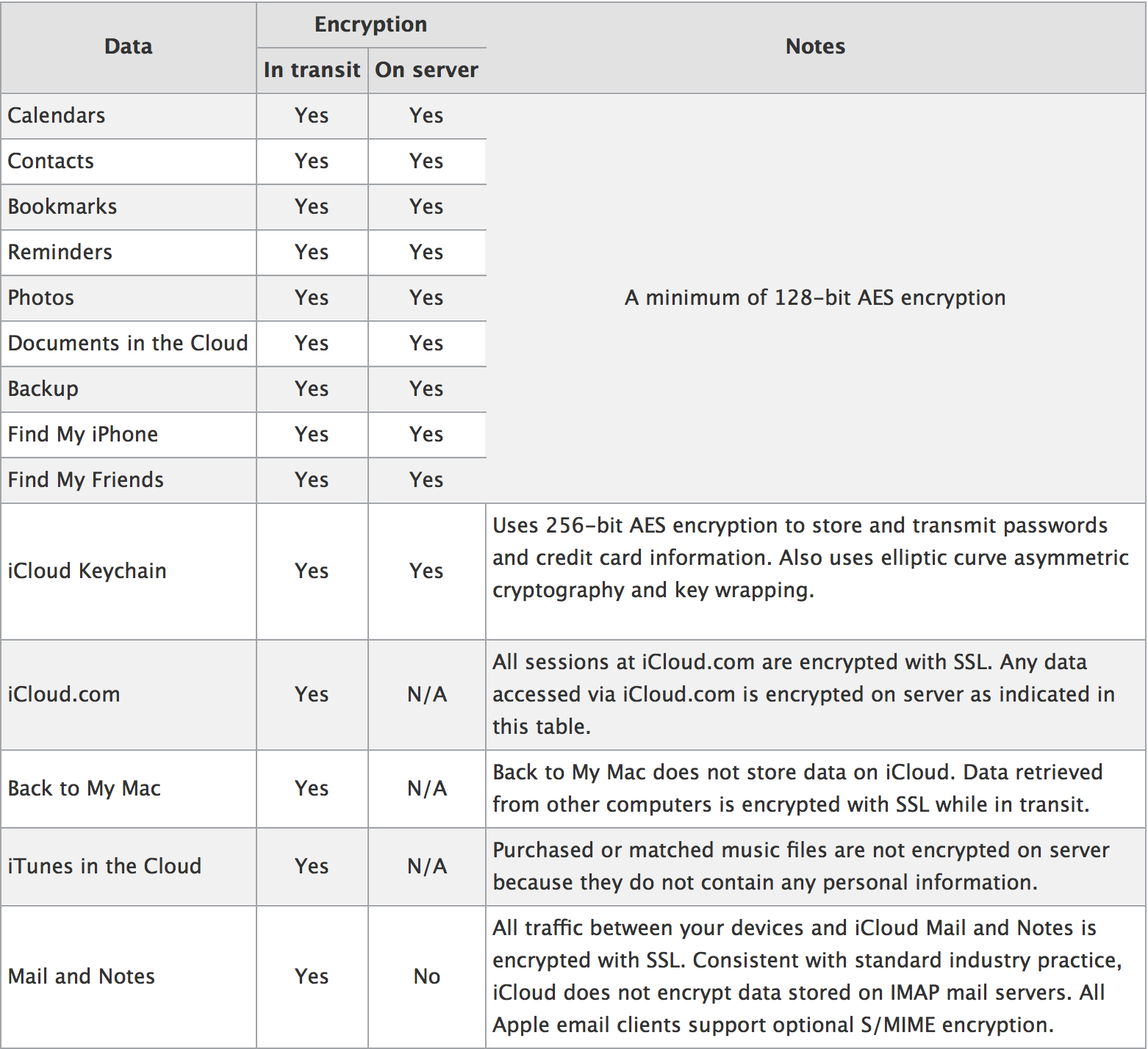 The chart indicates that only inbound emails are encrypted, but outbound are not via iCloud. It is likely that Apple will need to work with Gmail and other email providers to provide complete in-transit email encryption. Apple currently provides end-to-end encryption for services such as iMessage and FaceTime and the Electronic Frontier Foundation has even lauded Apple with 5 out of 5 stars for its customer online data protection.