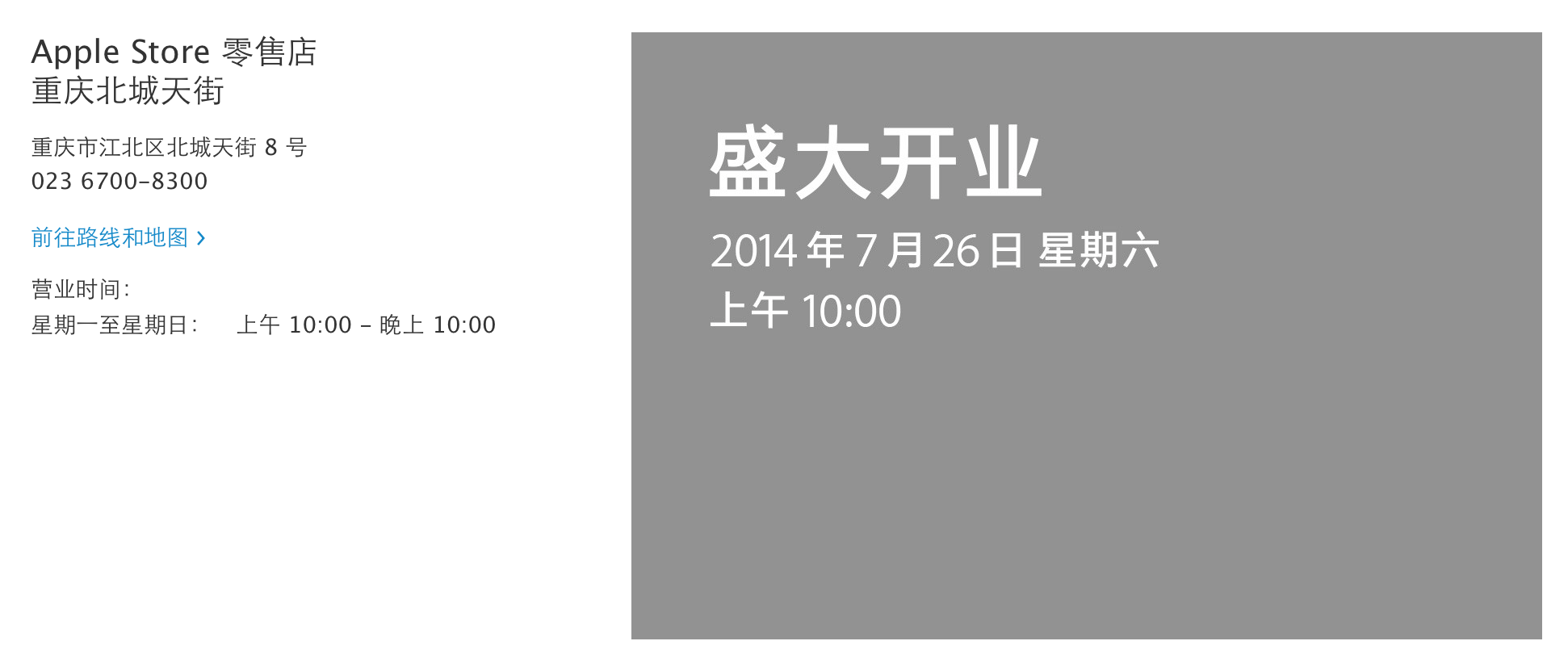 Next weekend, Apple will be bringing up its official Apple Store count in China to eleven. The Cupertino-based company will be opening up a new store at the Paradise Walk mall in the Jiangbei District of Chongqing on Saturday, July 26th. The official announcement was made on Apple’s retail website: