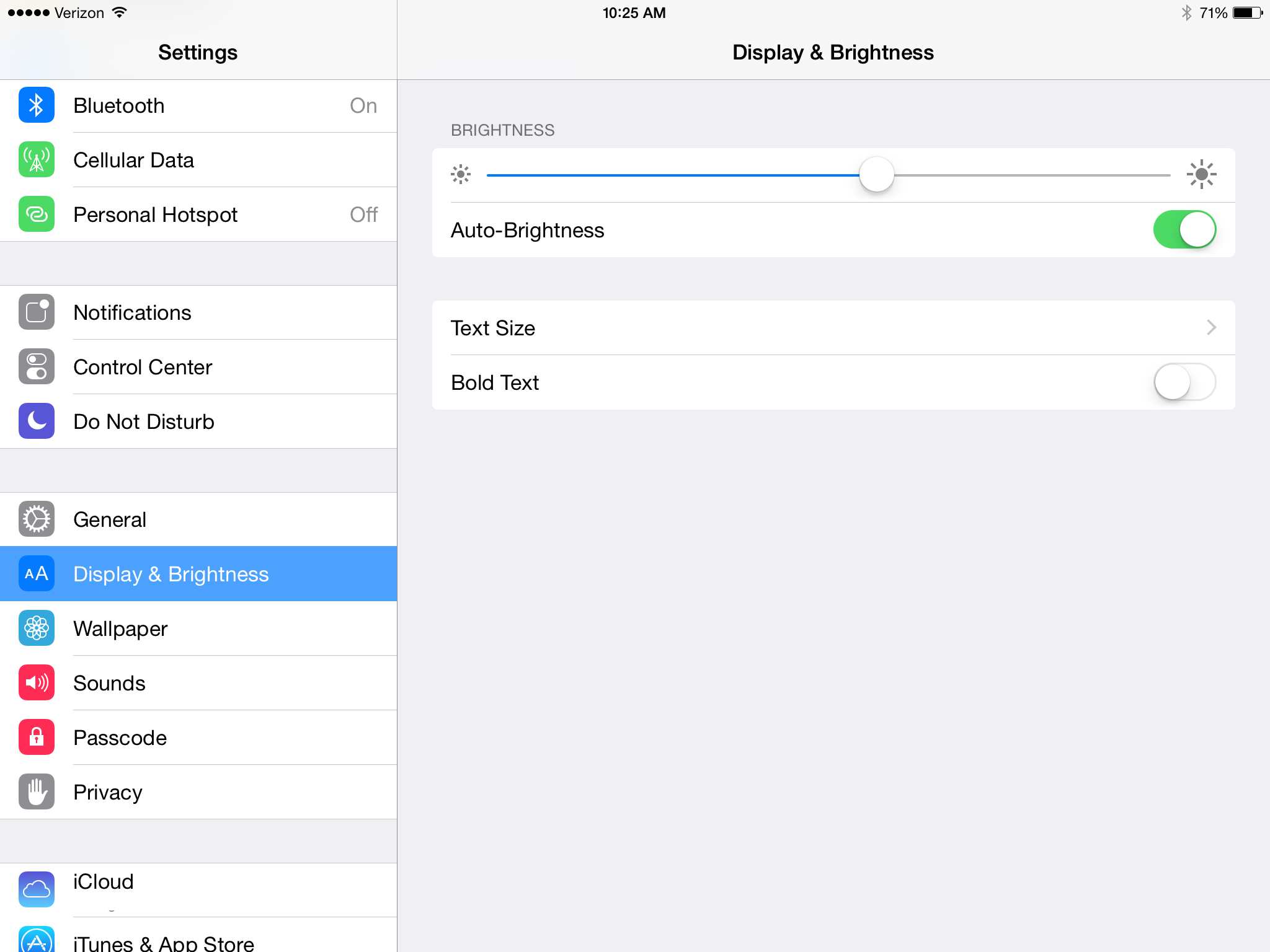 control center is white, new screen brightness and text size in settings