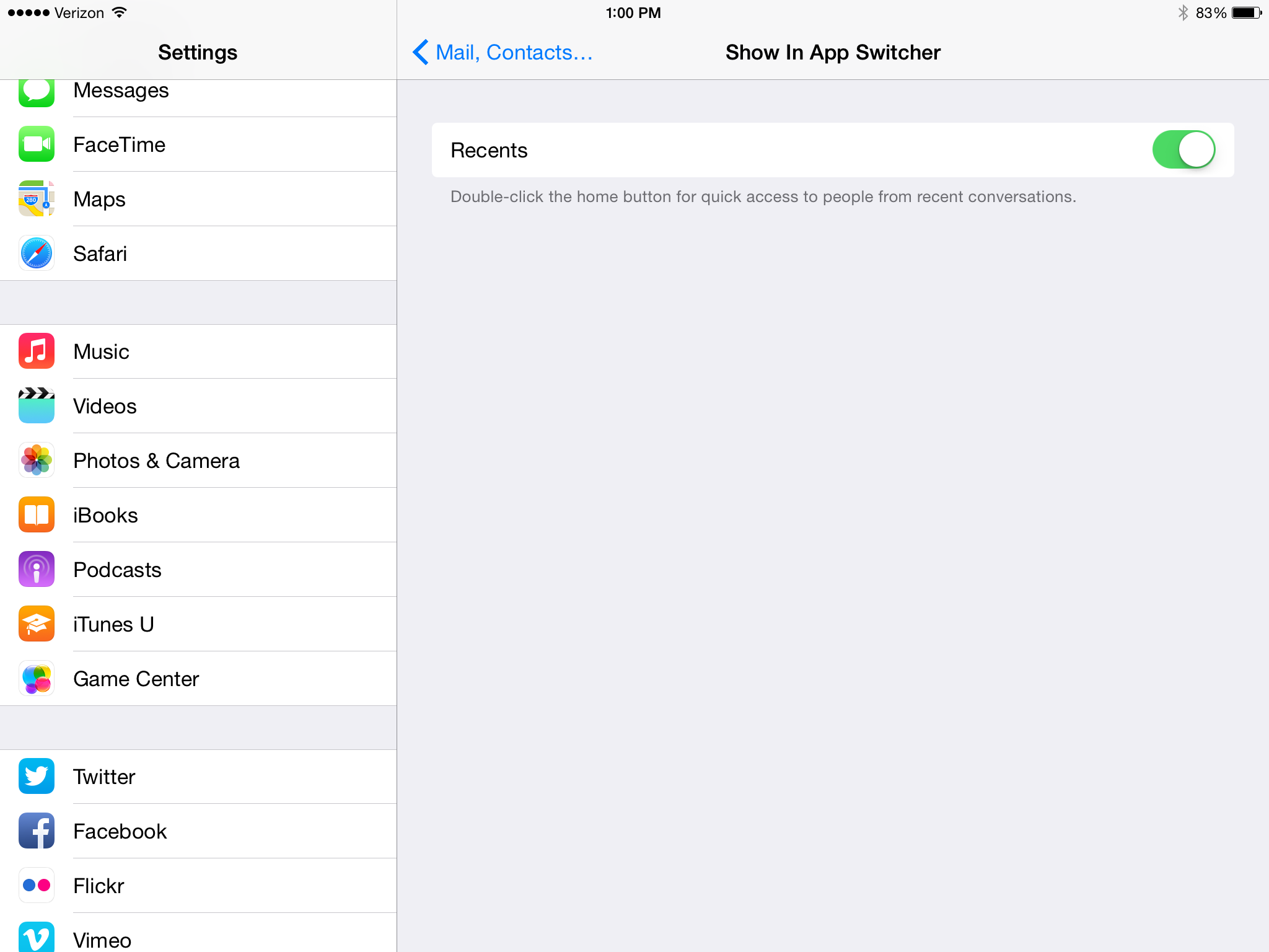 show in app switcher under contacts setting