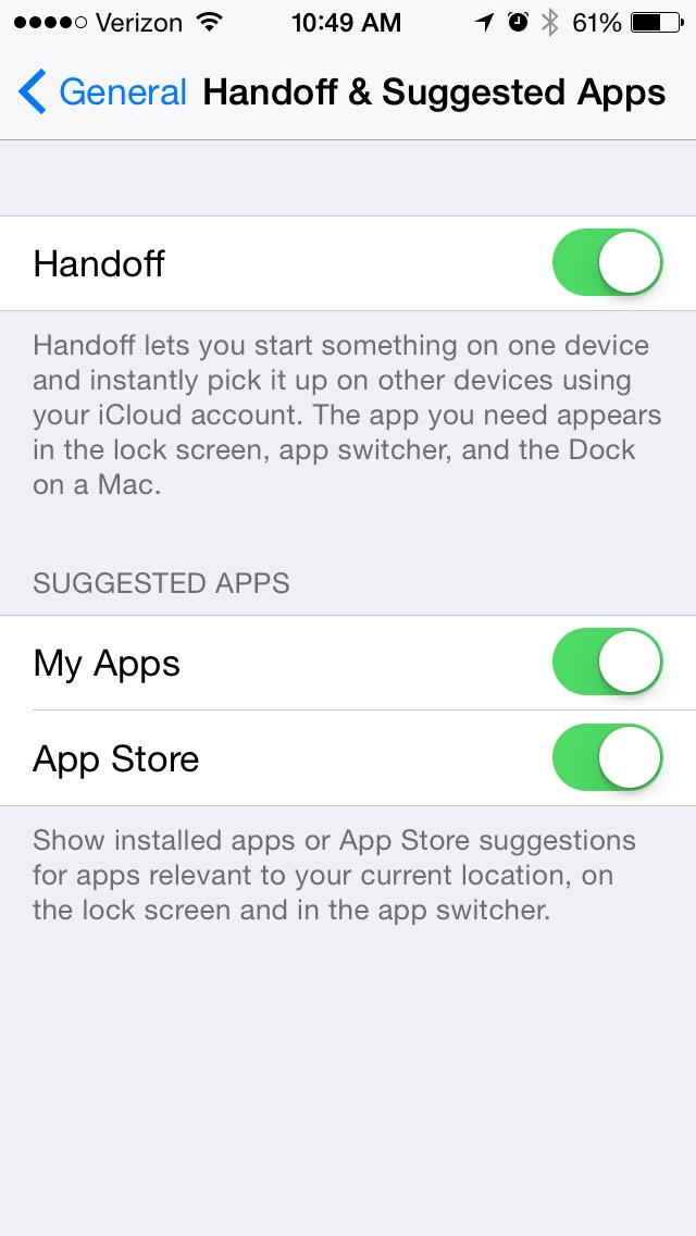 handoff no longer working on iPhone 4S. not even settings are available