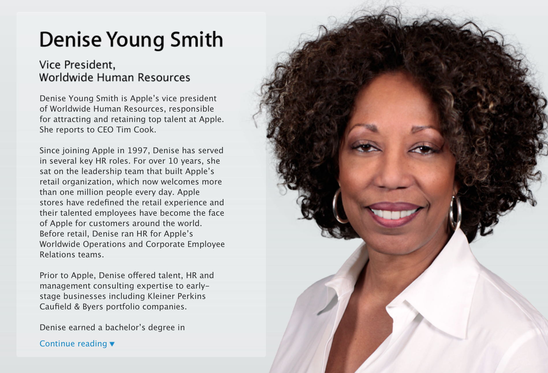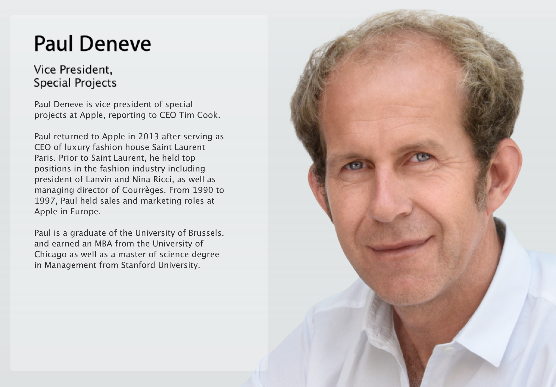 Apple today has expanded its Executive Leadership Team to include notable Apple Vice Presidents. The team shown on Apple’s official PR Bios website now includes Vice President of Special Projects Paul Deneve, Vice President of of Environmental Initiatives Lisa Jackson, Vice President and Dean of Apple University Joel Podolny, Vice President of Hardware Technologies Johny Srouji, and Vice President of Worldwide Human Resources Denise Young Smith.
