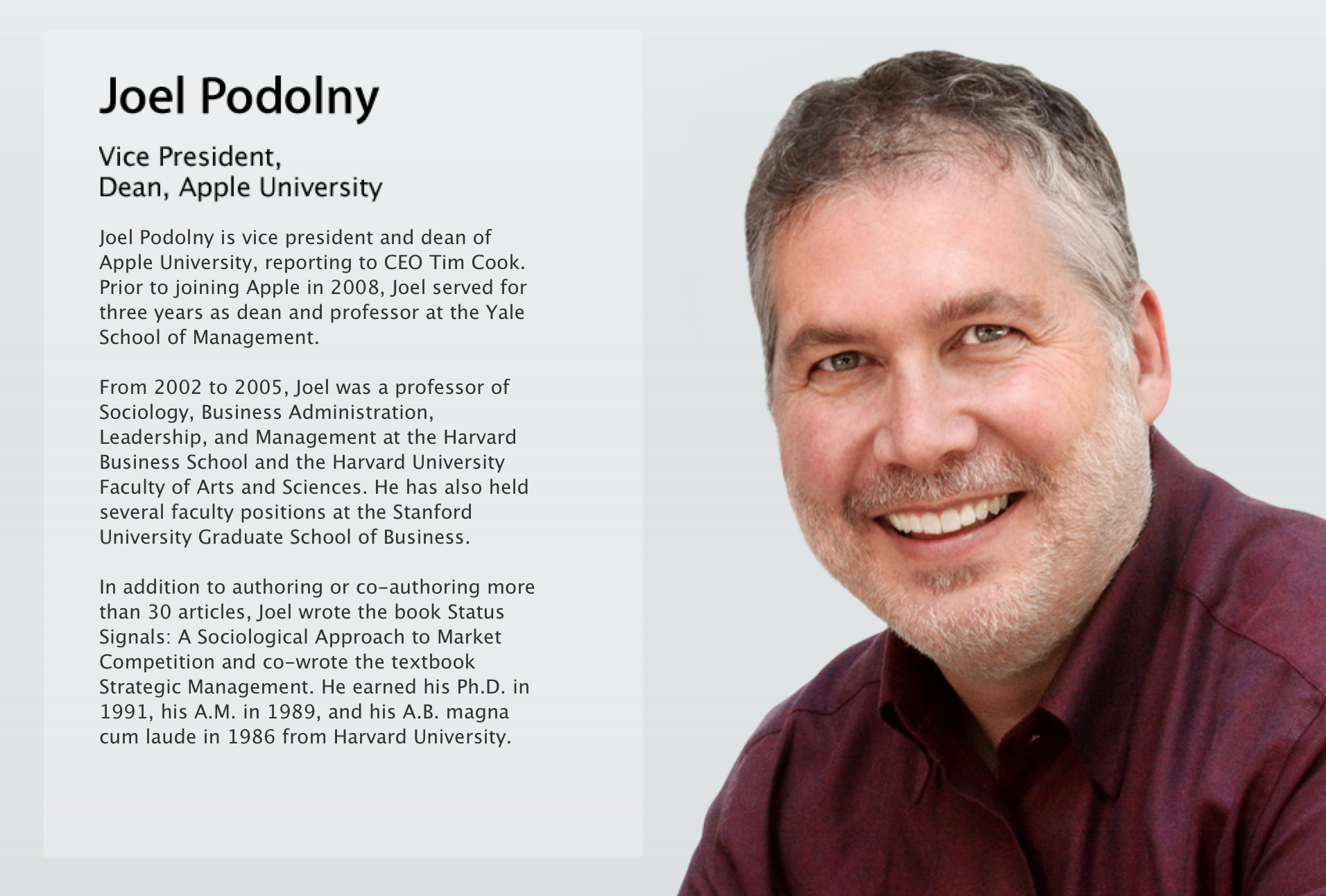 Interestingly, each of these positions is fairly new to Apple: Deneve joined from Yves Saint Laurent last year, Lisa Jackson moved over from the EPA last year, Joel Podolny went full-time on Apple University earlier this year, Young Smith was promoted to head of HR earlier this year, and Srouji became head of Hardware Technologies upon Bob Mansfield’s (second) role reduction last year…
