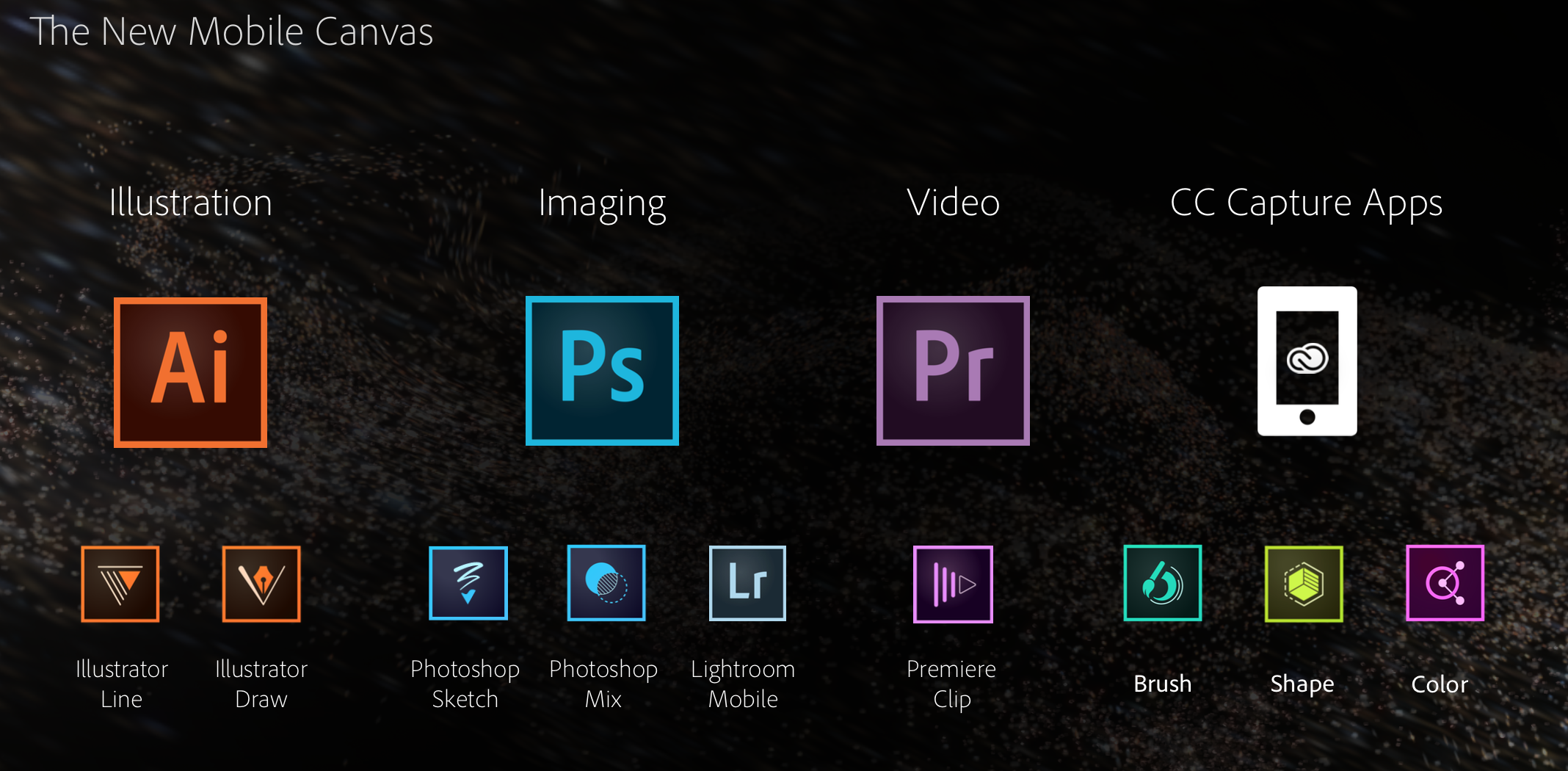 Ahead of its annual MAX Conference kicking off today, Adobe has launched an entirely new suite of apps that are now available on the iPhone and iPad App Store. This year, Adobe is focusing on simplifying its mobile software lineup into four categories that sync with desktop counterparts: Illustration, Imaging, Video, and a new platform called Creative Cloud Capture Apps. Each of the apps within the four categories are either brand new or have been enhanced.