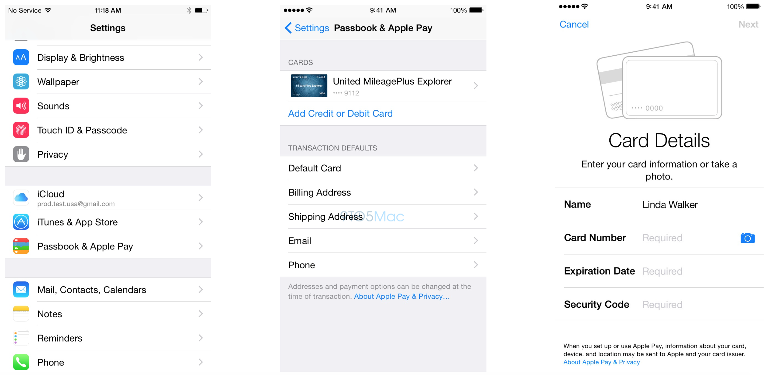 As can be seen in the image above, Apple Pay can be set up via the Passbook application through both the initial iOS 8 setup process or in a new Settings.app tab called Passbook & Apple Pay. Some of these details were previously revealed by internal settings in the latest iOS 8.1 beta seed for developers.