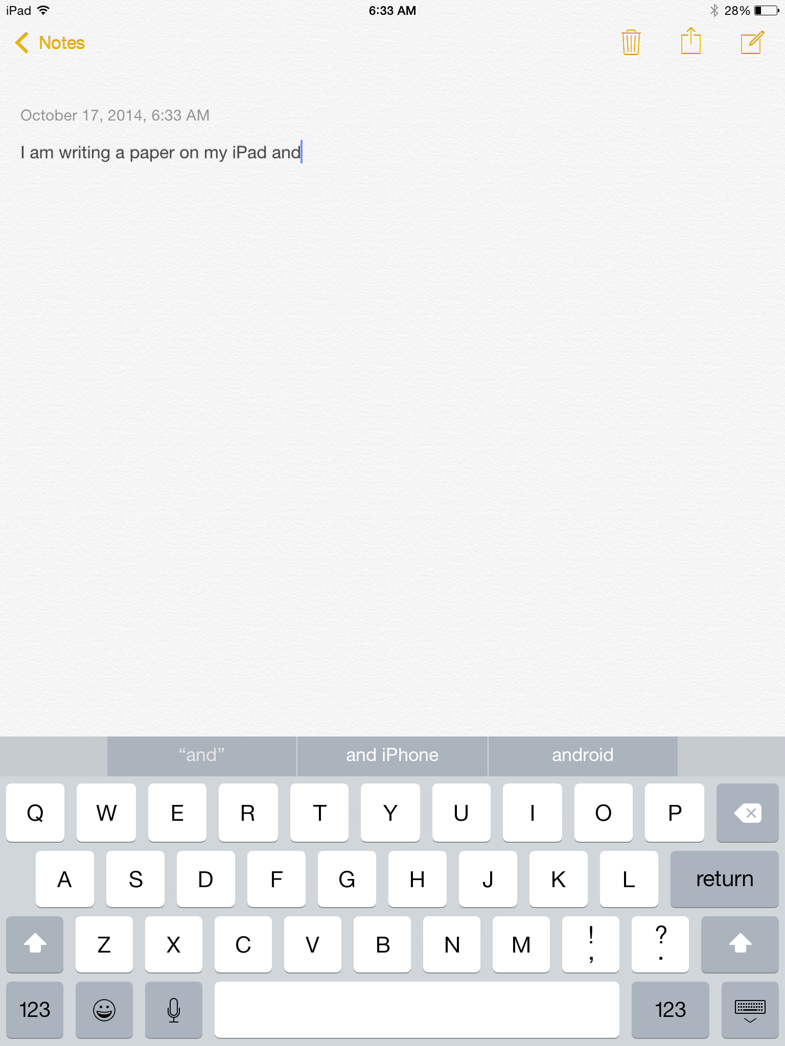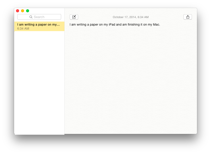 In my example above, I said one of the ways you can use Handoff is to start writing a paper on your iPad and finish it on your Mac. To do this, I will be using Notes for iOS and Notes for Mac. I start to write it in Notes on the iPad.