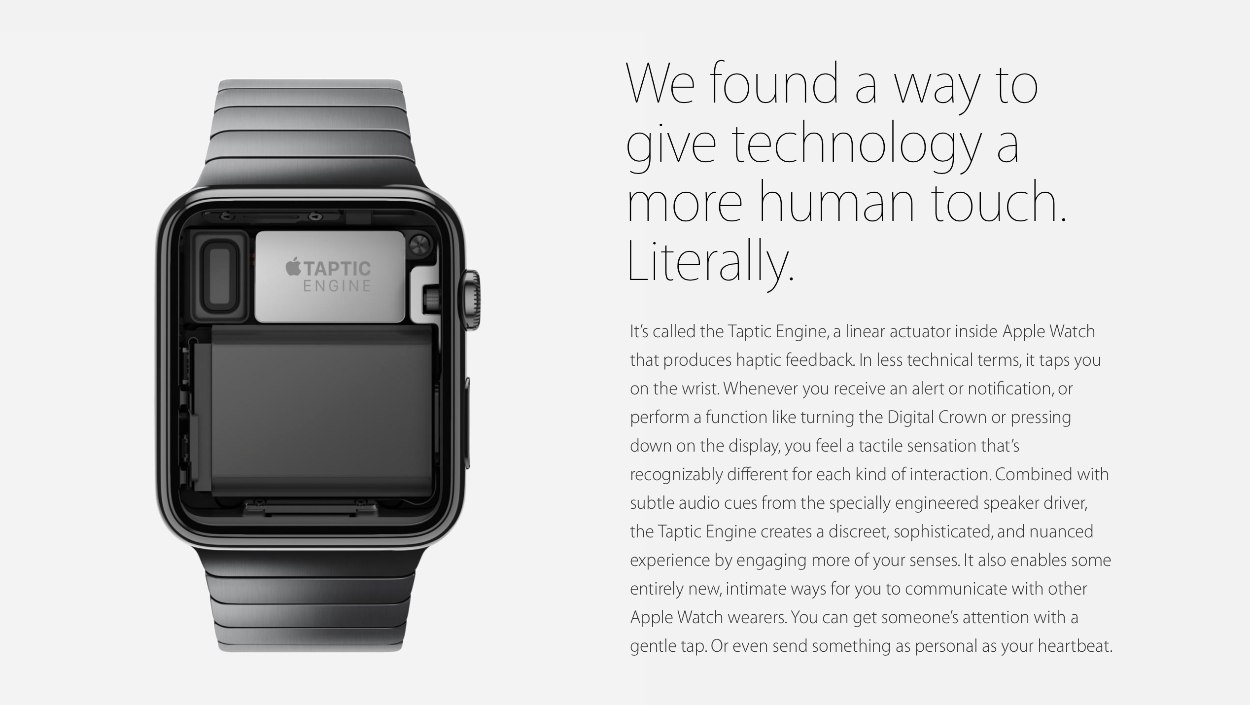 And because it’s a new product, he said there’s “a childlike awe and curiosity” about what the Apple Watch might do. As an example, he spoke about its alarm-clock function. “Just yesterday, somebody was saying, ‘Wow, do you know what I just did? I set the alarm in the morning, and it woke just me by tapping my wrist. It didn’t wake my wife or my baby,’” he recounted. “Isn’t that fantastic?”