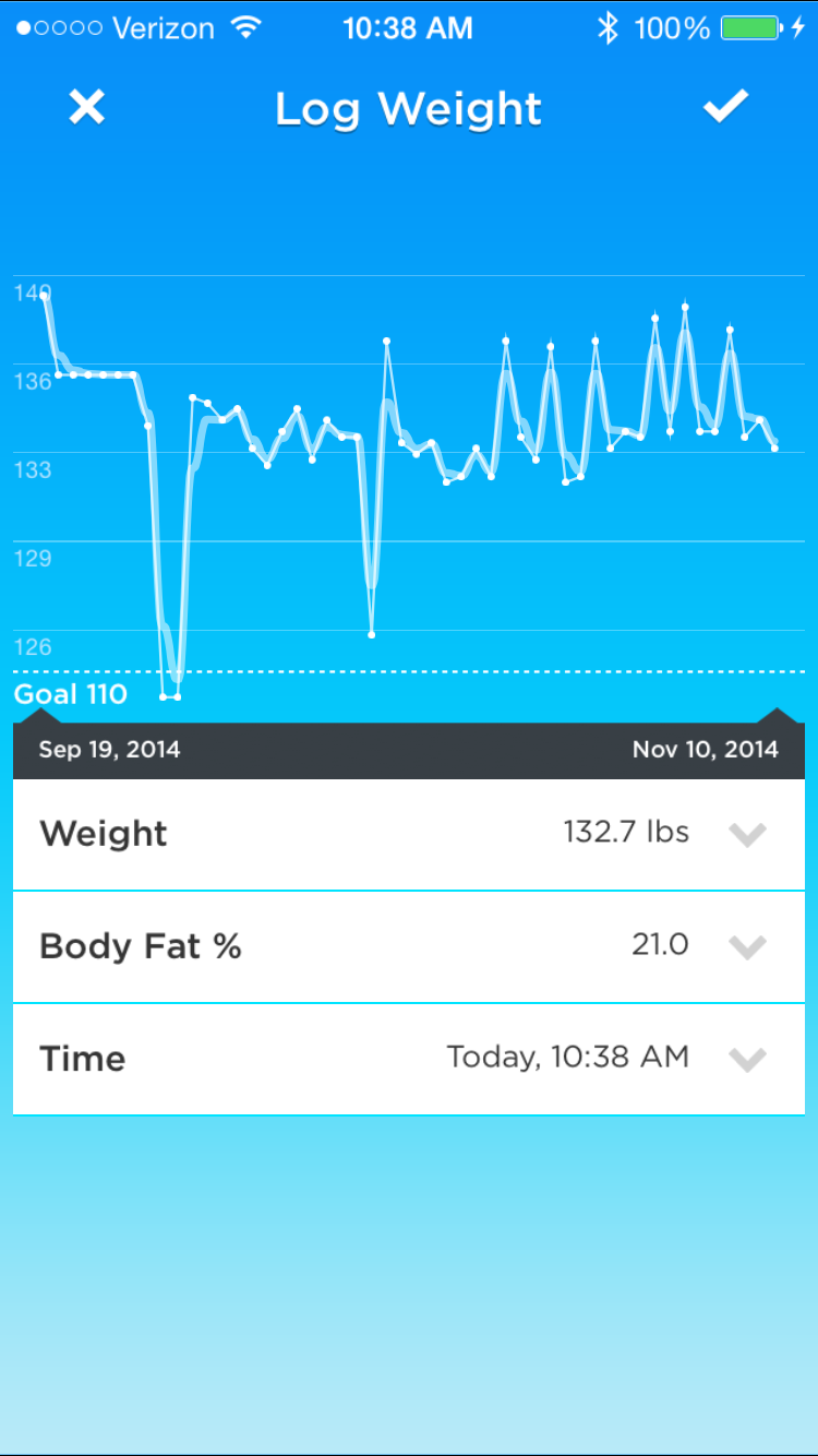 With the Withings Smart Scale, I weigh myself first thing every morning and the information from the scale, including weight, and body fat percentage automatically gets logged into the app.