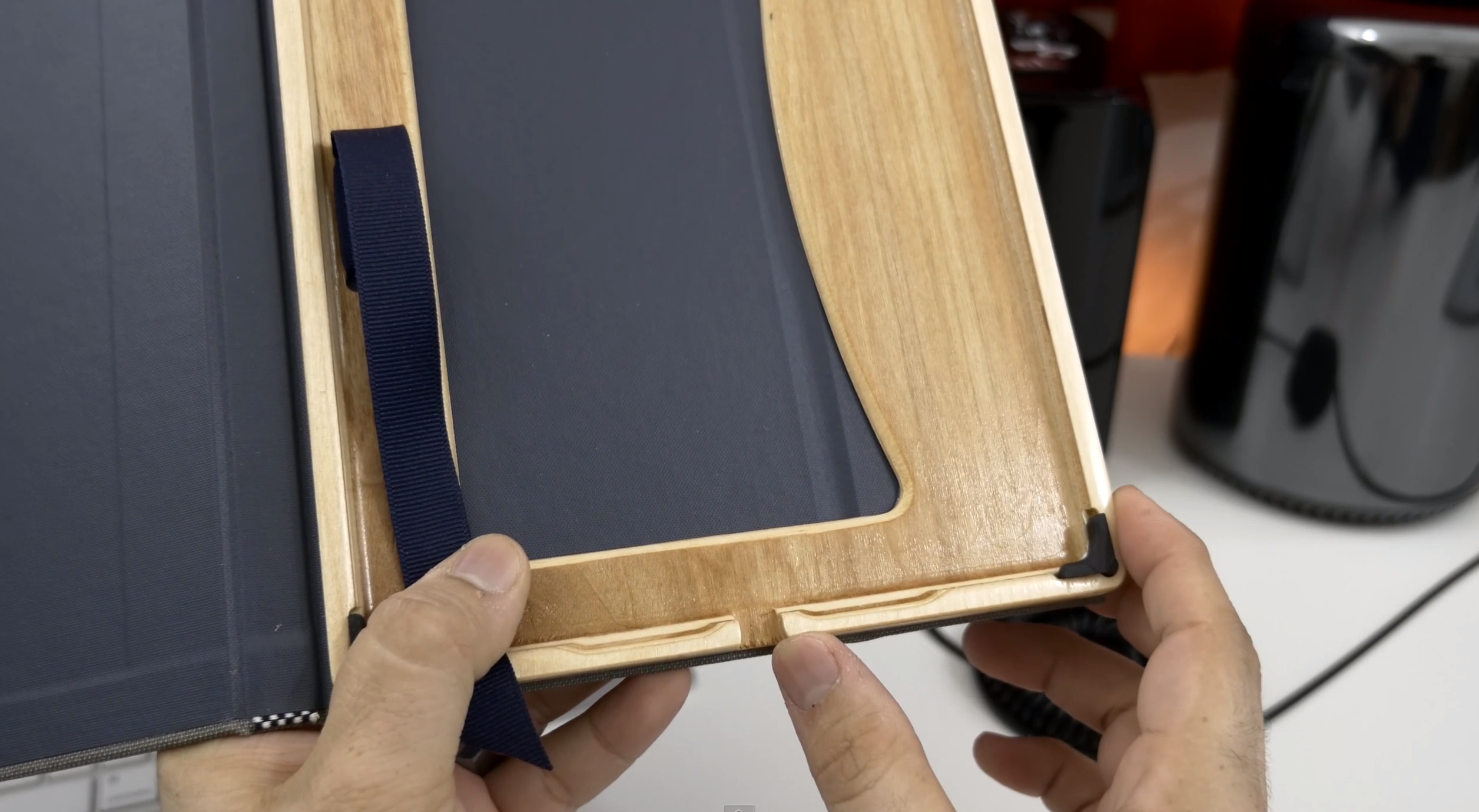 The Contega Linen also has “Multi-channel positioning” which are basically notches on the inside cover of the case that allow for multiple view angles (only two though). There didn’t seem to be any security to keep the iPad propped at an angle aside from those notches, but due to the material used on the inside, it can get a little slippery. As long as you’ve secured an edge of the birch frame within one of the “notches,” there should be an issue, but there’s no magnets to keep it in place.