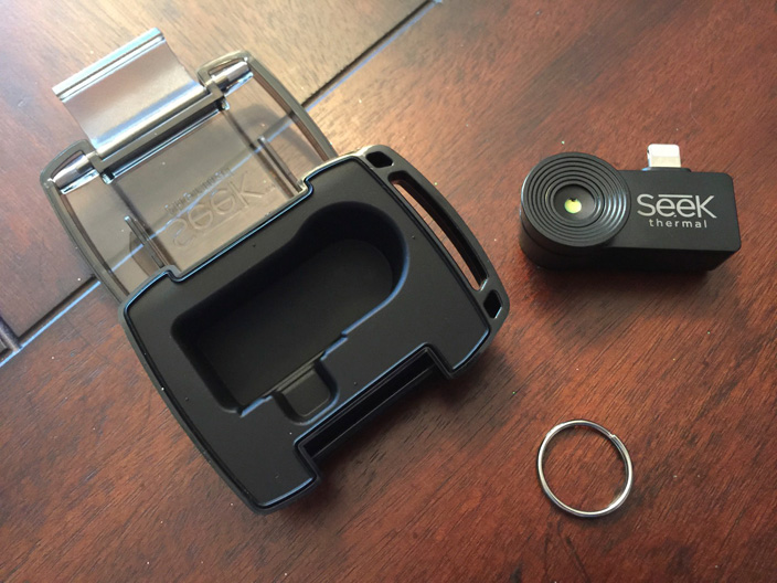Seek Thermal also includes a durable, clamped hard plastic carrying case with a smoke-clear top and an opaque black bottom, plus a keychain ring to help you carry the case around.
