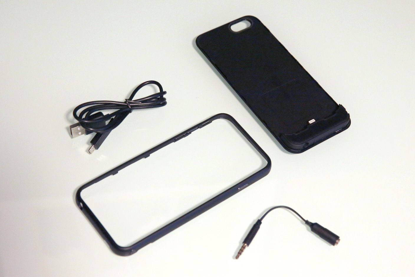 offGRID Express follows the same general pattern as Incipio’s prior $80 offGRID for iPhone 5/5s, arriving in a package with a micro-USB recharging cable, a headphone extension cable, a rear and bottom frame with a battery inside, and a wraparound bumper that covers all of the iPhone’s sides. Unlike prior offGRIDs, Incipio doesn’t include screen film or a cleaning cloth with this version, perhaps because the iPhone 6’s curved screen edges don’t look particularly good with film. No one else we’ve seen is including film with new iPhone battery cases, either, and offGRID Express partially compensates for the omission with better-looking and more tactile button covers than its predecessors.