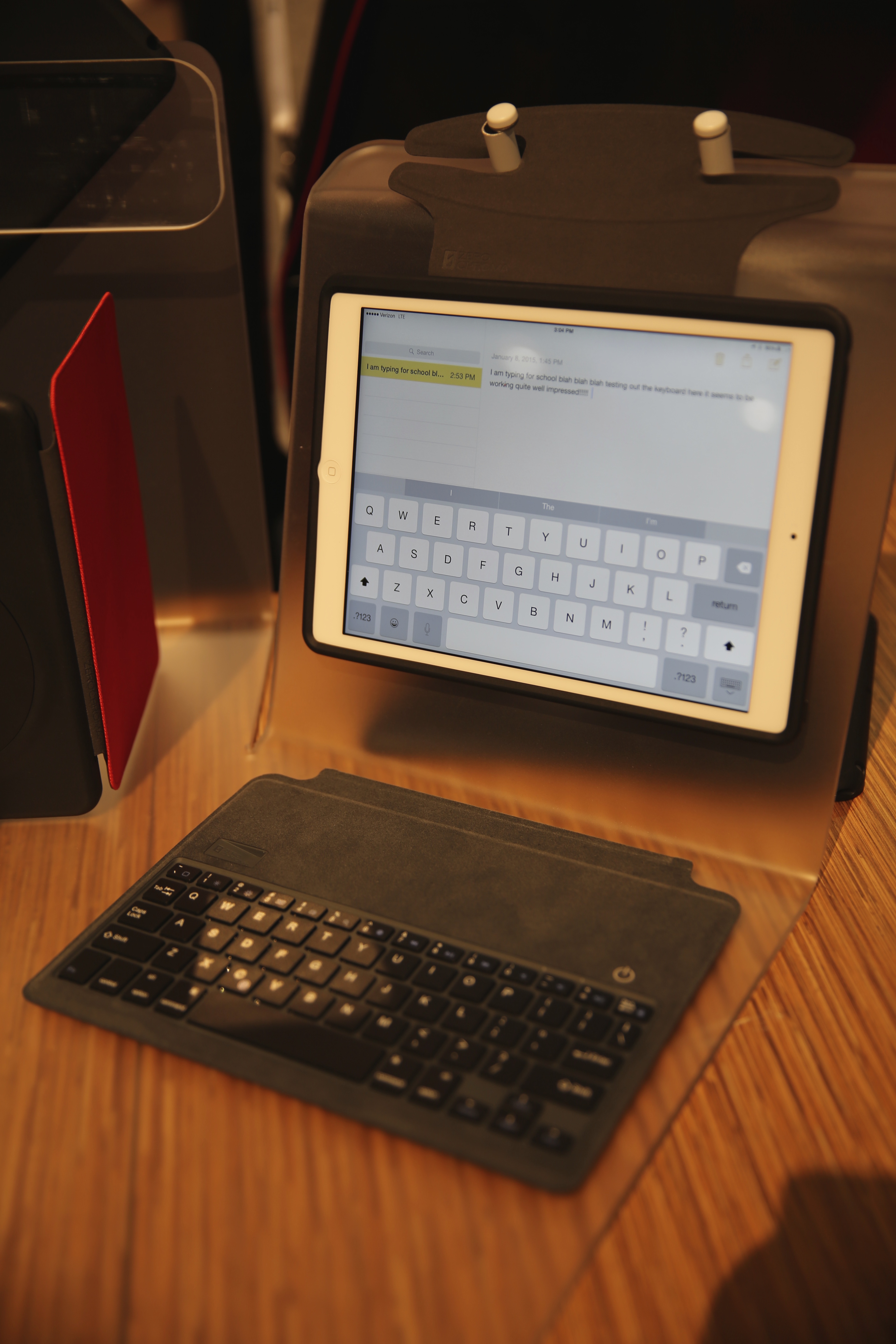 Great iPad Air 2 cases continue to be few and far between at CES, but Kensington’s KeyFolio Thin X3 Plus ($120) is a slender, Air 2-specific design with a large internal battery that powers either the keyboard or a USB device of your choice. The latest design has a nicer nylon exterior than the prior version, though the keyboard backlighting has been removed.