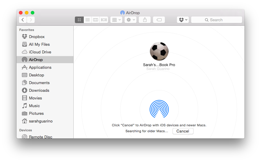 Then to share files with the older Mac works in the exact same method. While using AirDrop to the older Macs, the post 2012- Macs and iOS devices won’t display as being to AirDrop. When you want to switch devices you want to share items to press Cancel down in the bottom on the right.