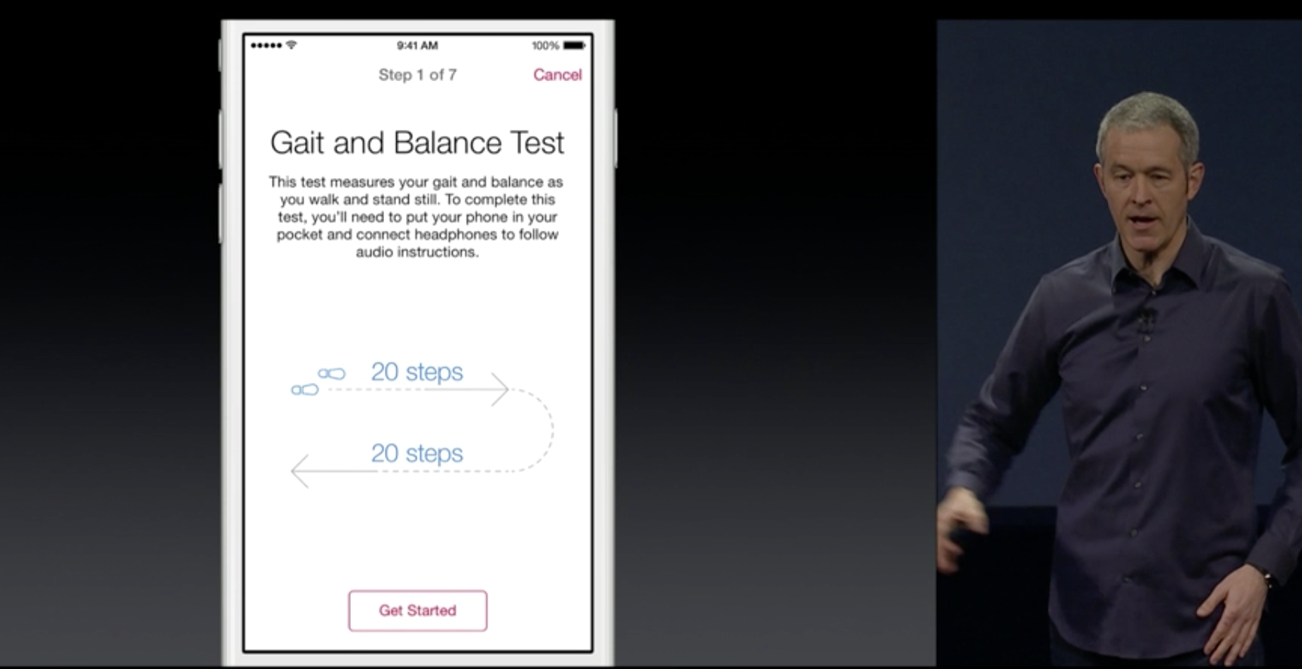 There are a total of five of these apps: Parkinsons, diabetes, heart health, asthma and breast cancer. The asthma initiative has special focus in New York City, where the company will track the region for asthmatic symptoms. Different apps focus on different things. One view showed how the iPhone measures variation in your gait (the way that you walk) to help you walk. These consist of simple ‘structured tests’ that use the iPhone’s sensor and some input by the user to collect information about the person, helping their health and wider scientific knowledge.