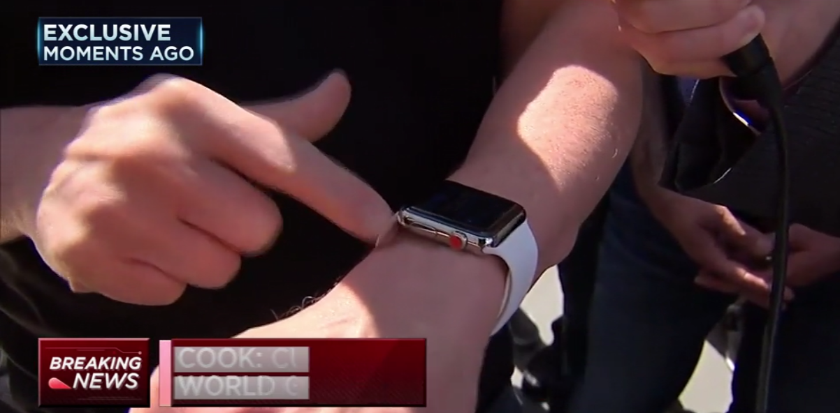 The interviewer asks Cook what he wears day-to-day. Cook says he swaps out bands depending on the occasion but likes the Apple Watch stainless steel with the white rubber Sport band. Weirdly, Cook’s watch features a custom red crown that is usually only found on certain Apple Watch Edition models. Photo below …