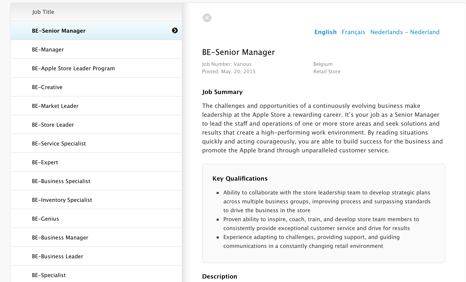 This is the second time that Apple has posted Belgium store job listings on its website, with the first set coming late last year. Interestingly, in line with the timing of today’s listings, Apple actually confirmed for the first time to Belgium-based website DeStandaard that an Apple Store will becoming to Belgium. “We look forward to bringing the unique Apple retail experience to our customers in Belgium,” Apple said without sharing addition information about the store. Earlier today, a now-retracted Tweet indicated that Apple Pay could, too, make its way to Belgium this year.