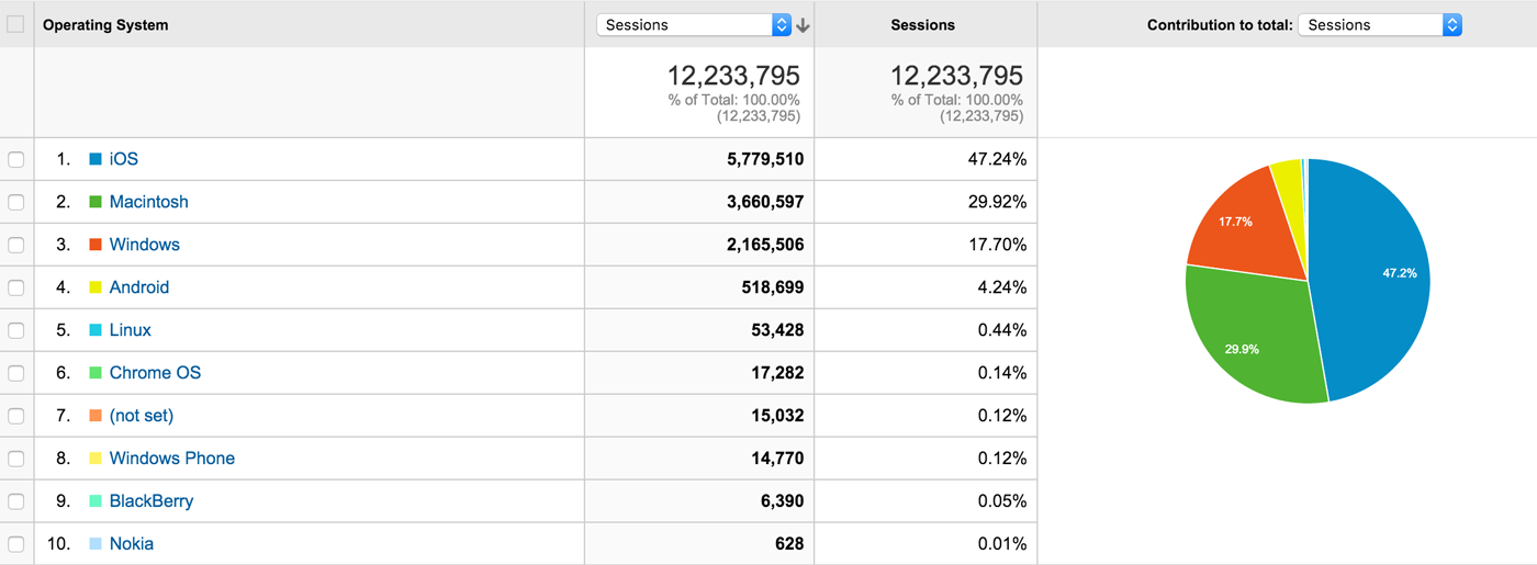 And visits from people using iOS devices, unsurprisingly, make up a huge percentage of our web traffic. Here’s a peek into our analytics over the past few weeks, showing that iOS devices are used by almost half our readers.