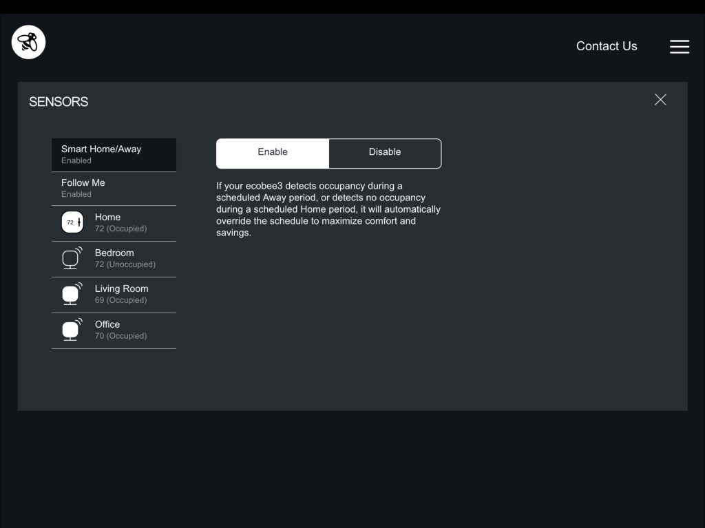 Whether you’re using the thermostat, iPhone app, or iPad app, ecobee3 has some handy intelligence behind it. For example, you can set target temperatures for when you’re at home and away then using the motion sensors to track presence.