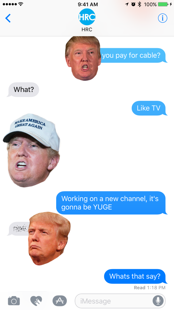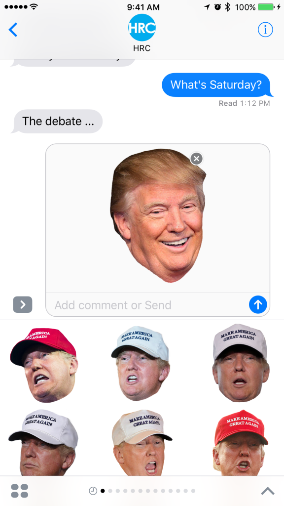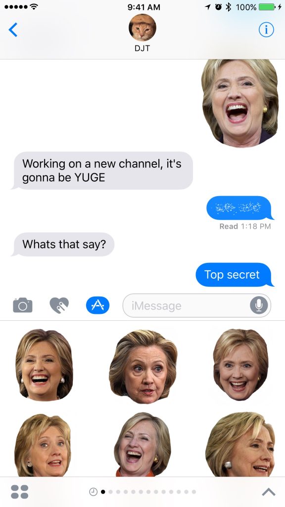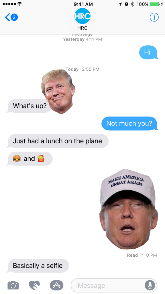 I’m happy to report today that my ridiculous idea for two sticker packs was a success and both Hillary Clinton and Donald Trump sticker packs are available on the App Store.