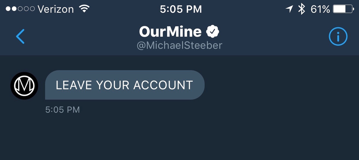 I found out that the hacking group OurMine was responsible for the attack. OurMine has hacked high-profile Twitter accounts in the past, including that of Twitter founder and CEO Jack Dorsey, Sony, HBO and plenty of others. The group continues to wreak havoc online, most recently defacing WikiLeaks. For some reason, they targeted me as well.