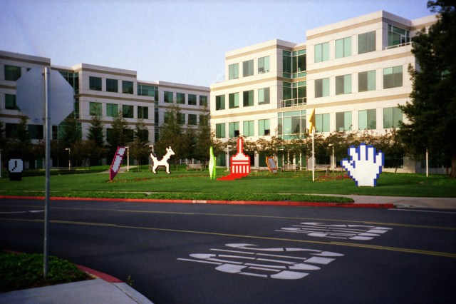 Today, Infinite Loop looks largely the same from the outside with a few notable exceptions. The “Icon Garden” was a favorite campus feature of many employees, located to the right of building 1. Large pixel art statues of various Mac OS tools and icons stood here, including Clarus the DogCow.