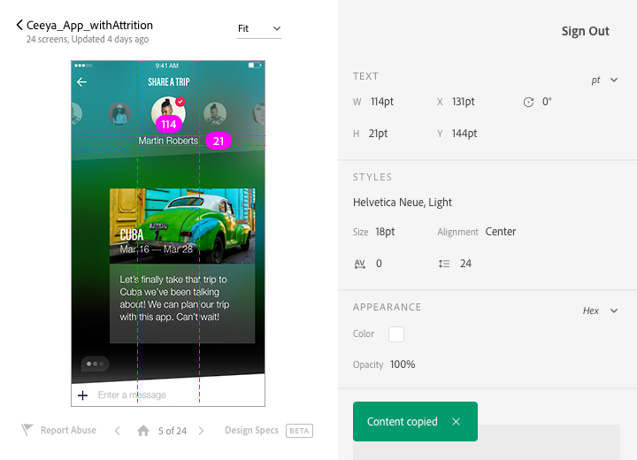 The highlight of today’s update is a beta feature called Design Specs. Adobe says the tool will help streamline the designer-to-developer handoff process. Support for design specs has been highly requested by the Adobe user community.
