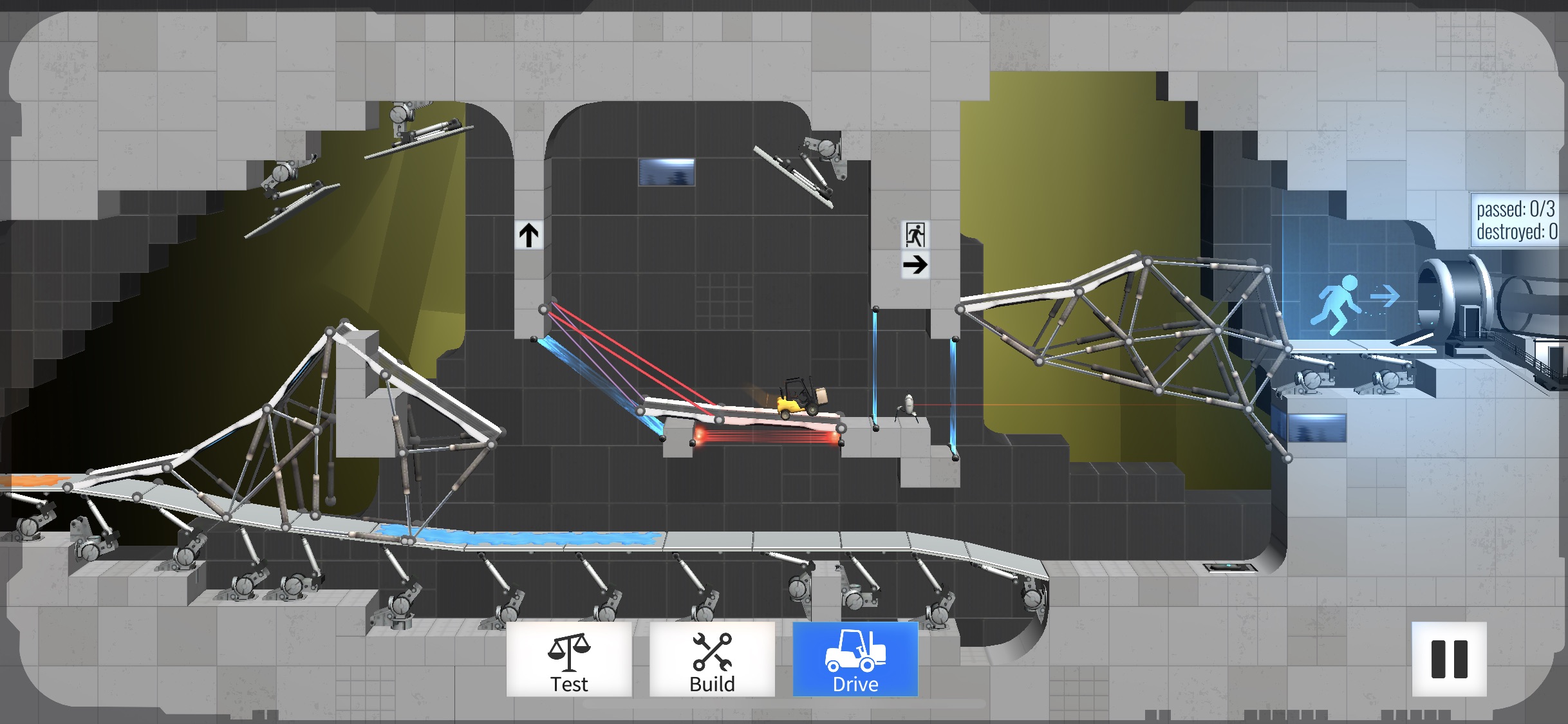 After you’ve successfully completed a level and proved your construction adequate to guide a vehicle to the exit, you’re presented with the amount of money wastefully spent on infrastructure, and the option to convoy a series of vehicles to the exit. More often than not, my makeshift bridges were able to withstand one forklift, but failed under the weight of multiple. This adds an extra element of challenge to the game for more ambitious players.