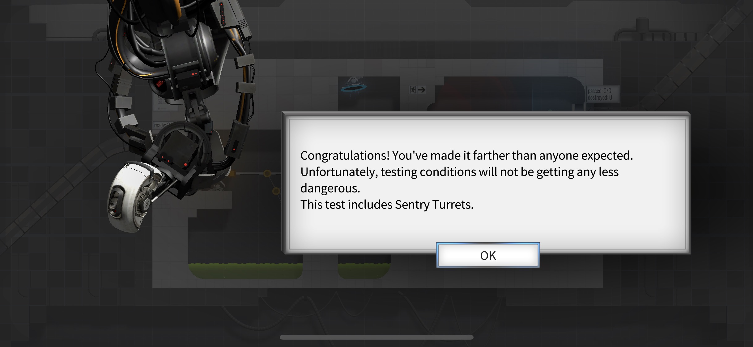 All of the familiar gameplay elements from the desktop games have made their way to iOS – cubes, sentry turrets, propulsion gel, aerial faith plates – the list goes on and on. Those who have played Portal before will get extra enjoyment from seeing these items return, but it’s not essential to have played prior games in the series.