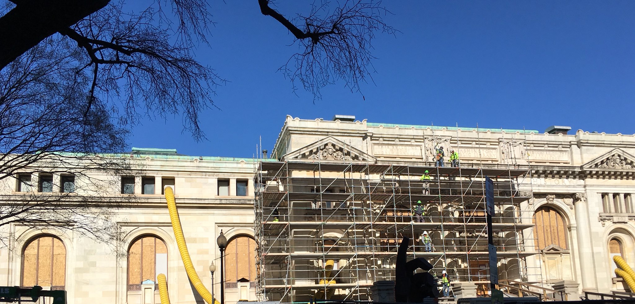On the other side of the country, construction work is well underway at Apple’s upcoming historic Carnegie Library flagship location in Washington D.C. A new photo posted over the weekend by Vincent Morris on Twitter shows significant progress being made on the exterior of the building. Windows have been removed and scaffolding has been set up to refurbish stonework. Readers have reported the inside of the building has already been cleared for restoration.