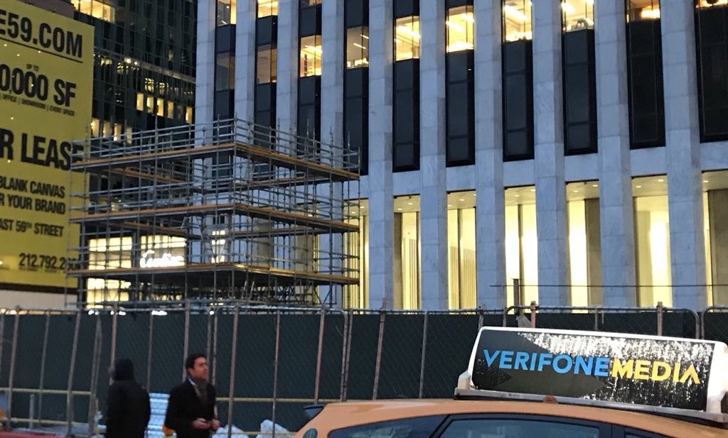 As seen in new photos taken outside the work site, familiar cube-sized scaffolding has risen above the construction barriers at Apple’s flagship Fifth Avenue store in New York City.