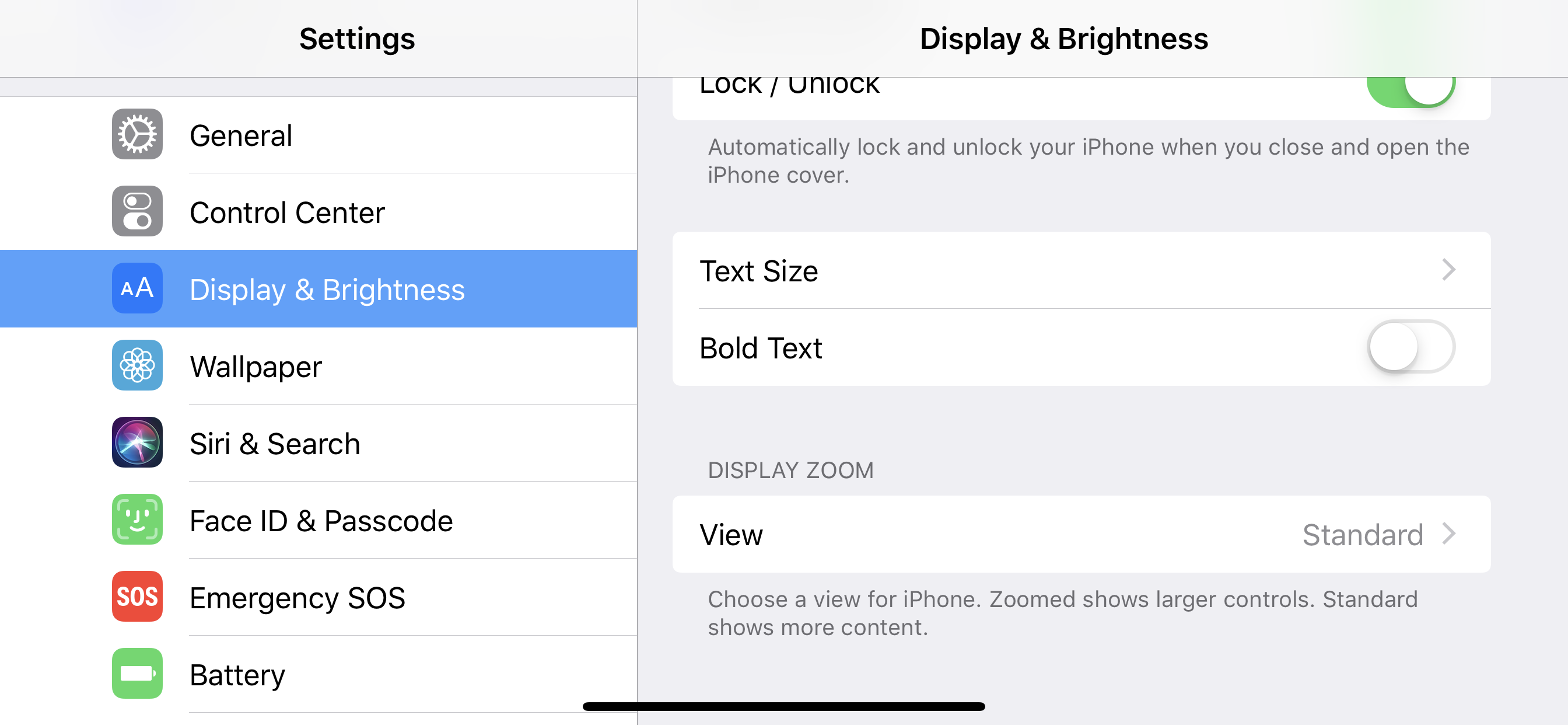 The effect Display Zoom has visually is less dramatic on iPhone XS Max (and likely iPhone XR) however, as the jump from 4-inch screens to 4.7-inch and 5.5-inch screens is more dramatic than 5.8-inch screens to 6.1-inch and 6.5-inch.