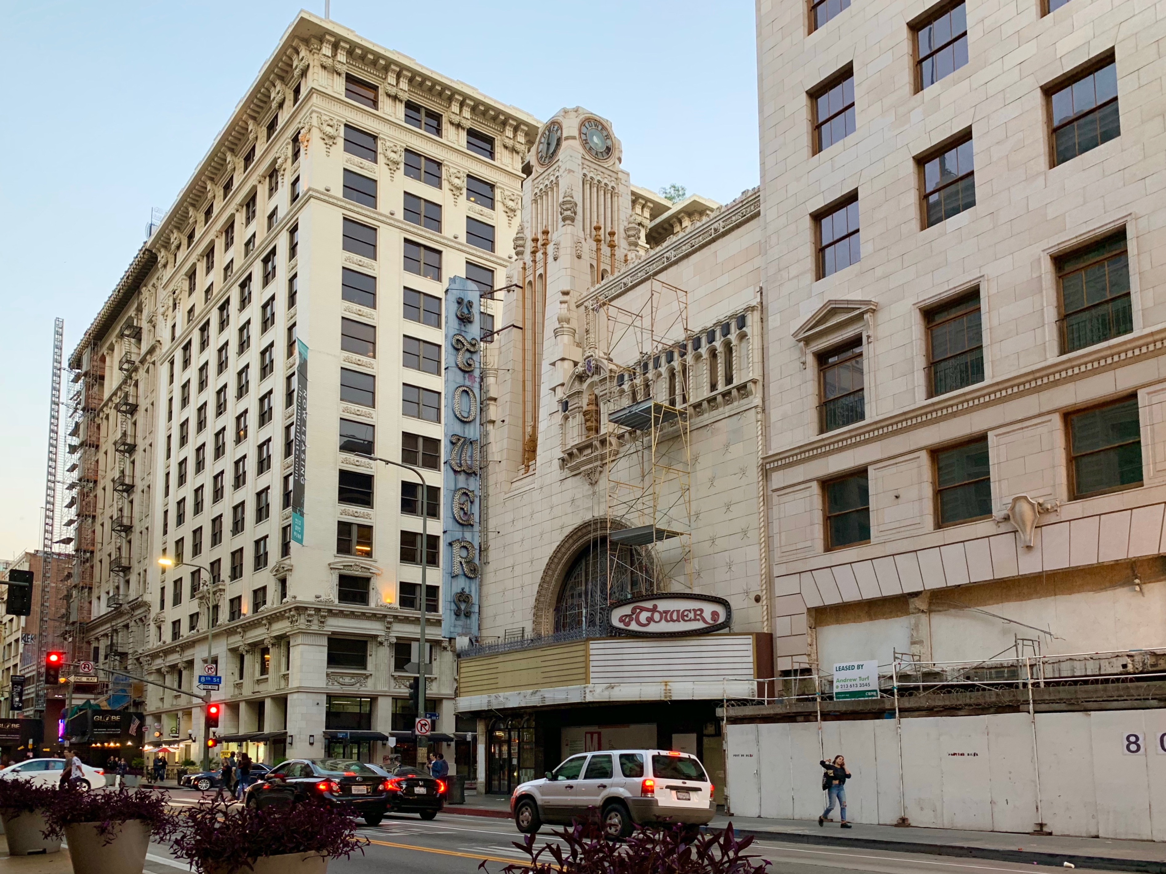 The Tower Theatre has a rich history of technology. In 1927, it premiered the first feature-length talking film and was the first theater in Los Angeles wired for sound. It has been air-conditioned since day one. After being renamed the Newsreel Theatre in 1949, a news ticker tape ran along the upper level of the lobby. Since closing as a movie theater in 1988, the space fell into disrepair. The original marquee was replaced long ago, and multiple renovations have altered interior details.