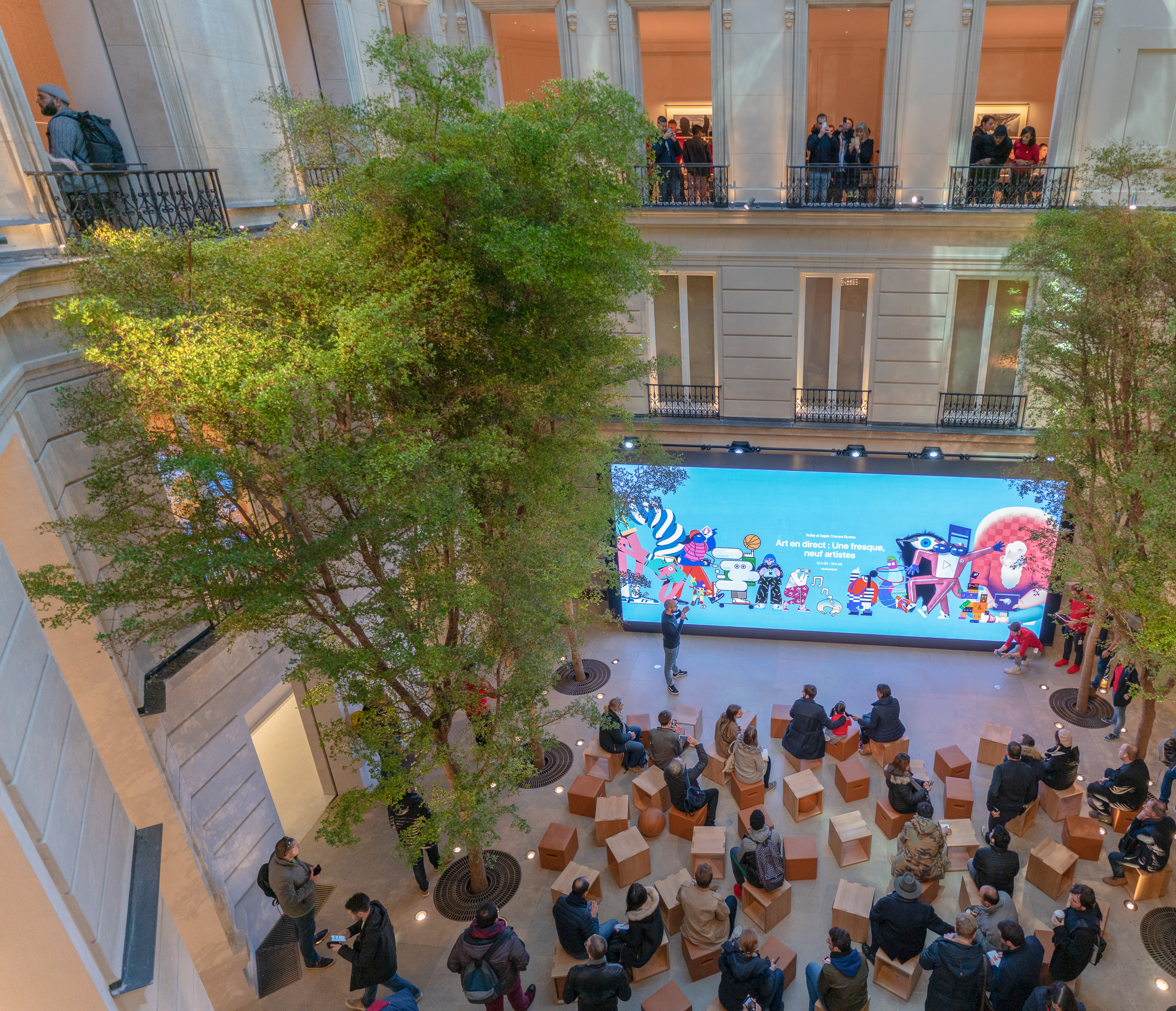 To celebrate the types of creative sessions and community performances Apple will host in Paris, the following 15 artists were selected to create works promoting the store’s grand opening. Additionally, a special Apple Music playlist has been created for the launch.