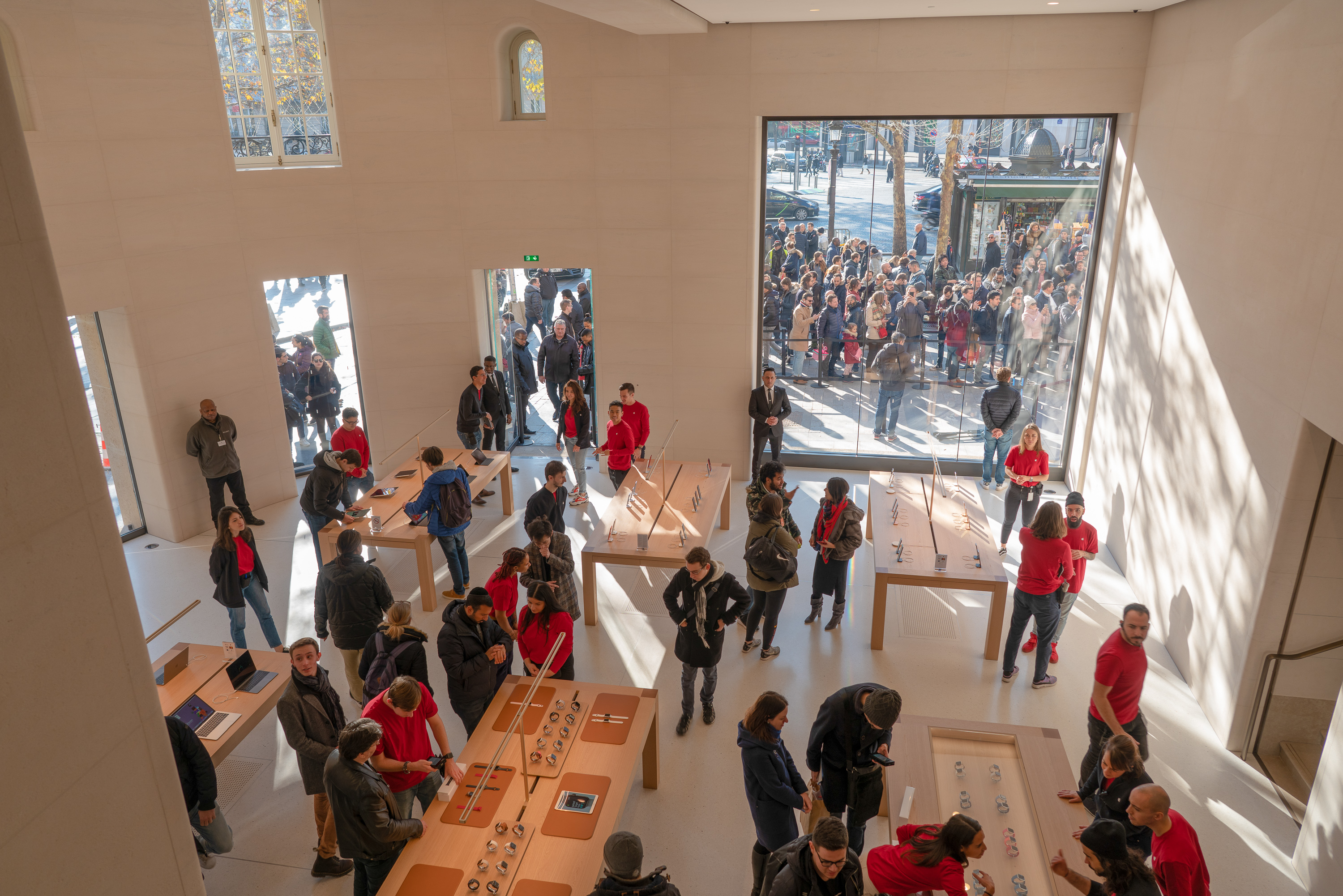 Above the third floor, offices will support Apple’s operations in France. 337 employees representing 15 nationalities and speaking 17 languages will work at the new store. 200 have been brought in from existing locations.