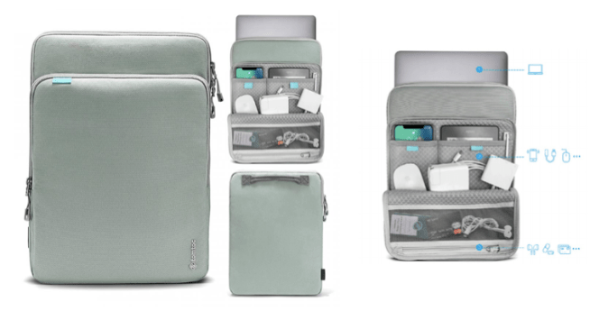 Tomtoc’s 360° sleeve has a ton of additional real estate for storage other than the main laptop pocket.