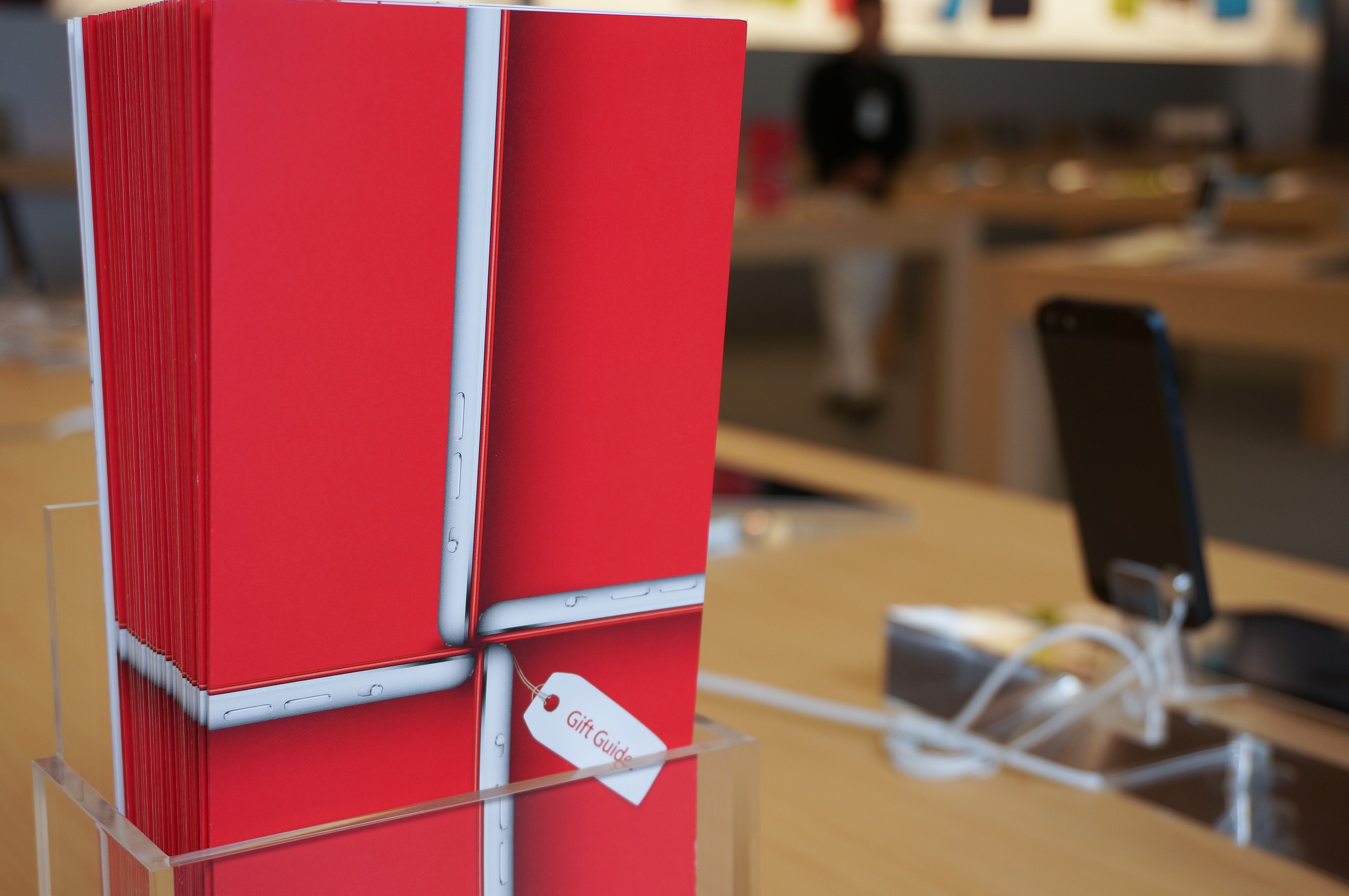 2015 marked Apple’s transition from full holiday displays to graphic panels under the renewed gift guide tagline “From one gift come many.” Every classic store featured similar panels, but only select contemporary locations had space devoted to the graphics.