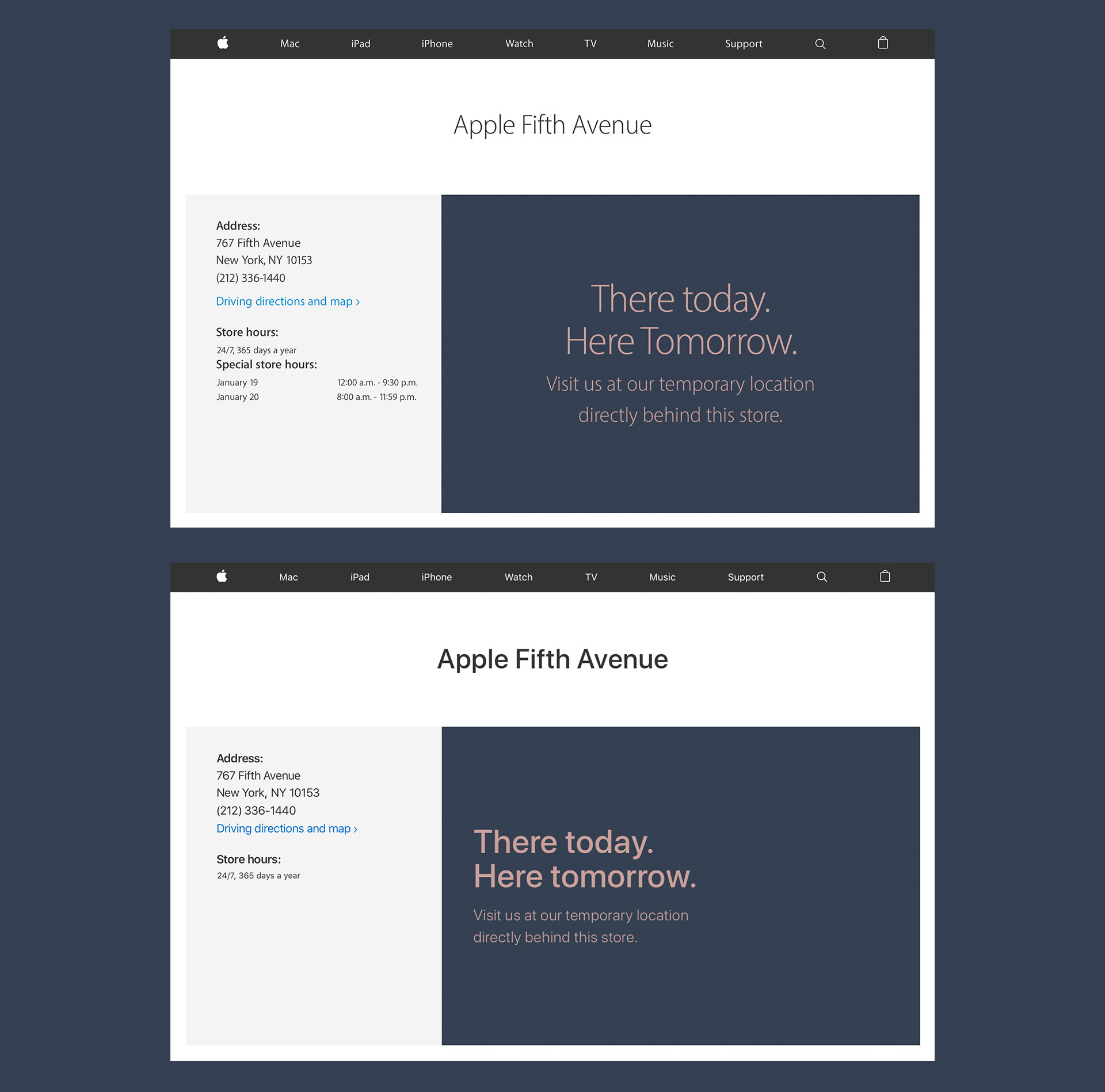 There yesterday. There today. There tomorrow. Apple Fifth Avenue’s construction predates a visual redesign of Apple.com.