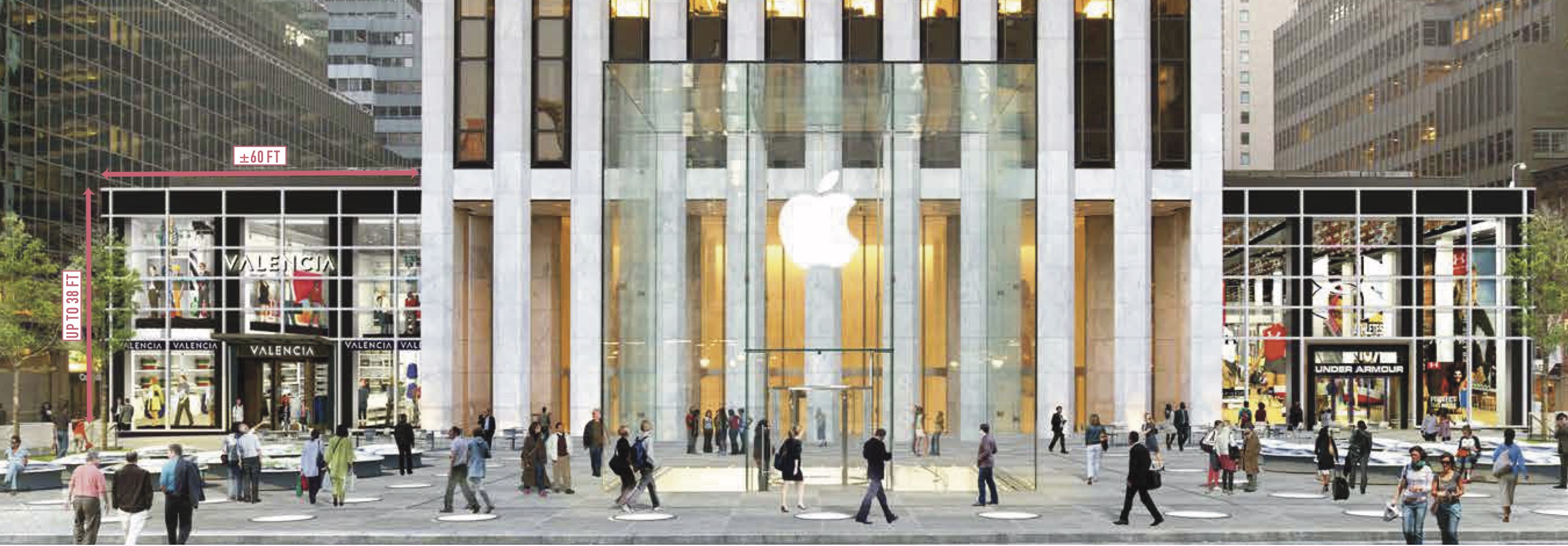 Opposite Cartier, apparel brand Under Armour has negotiated a deal to open a flagship store after Apple vacates its temporary space. As recently as this past August, the project was still on track to open in 2019. But on December 13th, the Baltimore Business Journal reported that Under Armour’s plans were pushed back to 2021, presumably because Apple is still occupying the space. The company now expects to initially take possession of the storefront during the first half of 2020.