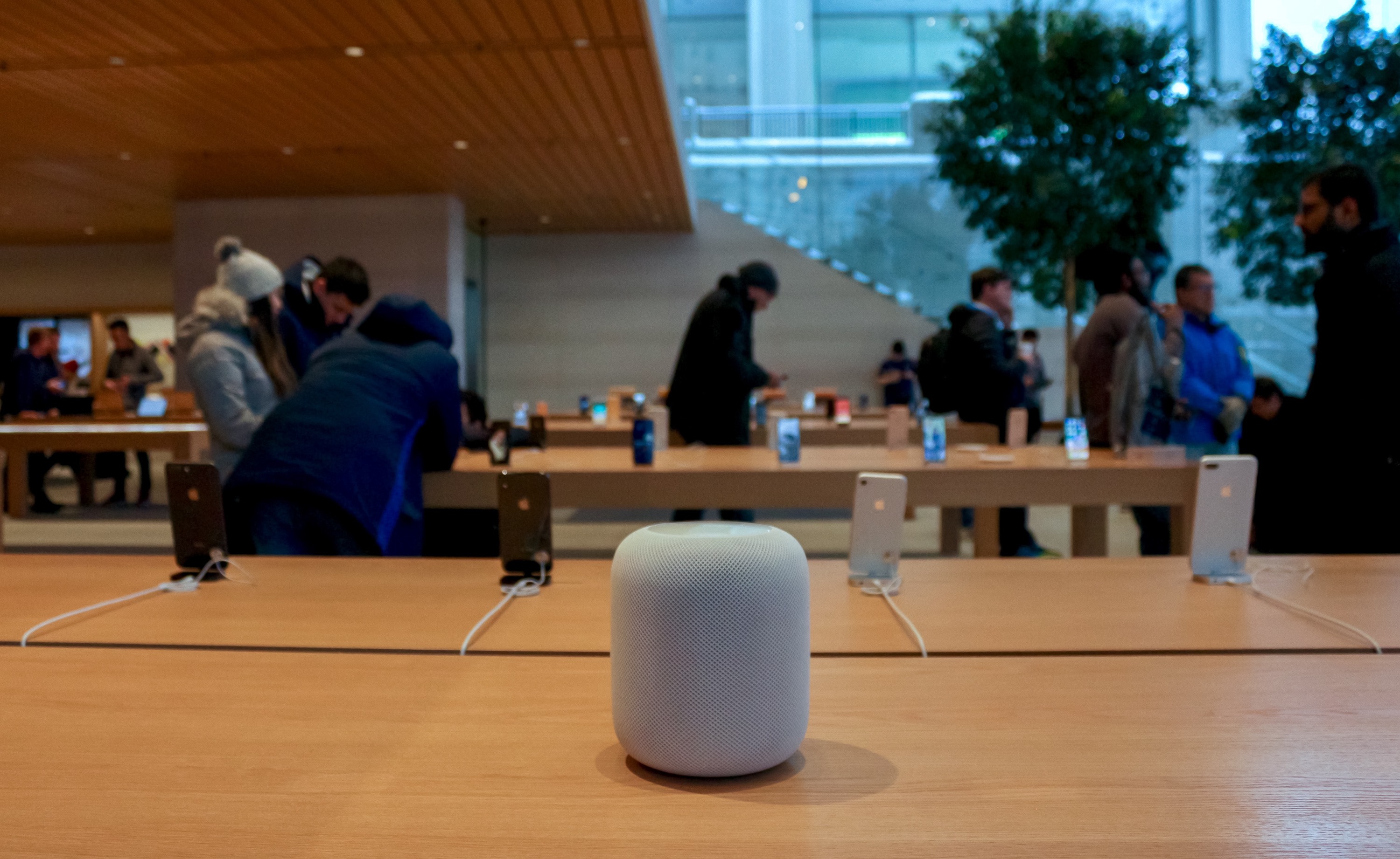 In February, Apple released the HomePod and began displaying it in stores. Demoing a Siri-controlled speaker in a noisy environment is a challenge, so iPad mini display units were employed to highlight the device’s specs and features. A similar strategy is used at Apple Watch try-on tables. We conceptualized how augmented reality and dedicated Avenues could be used to create a more immersive demo experience. Later in the year, Apple began merchandising HomePod boxes on Avenue shelves.