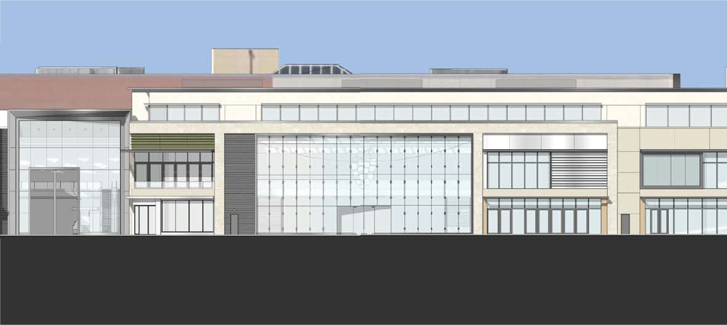 Valley Fair planning documents and renderings beginning in January 2016 show what is likely Apple’s new space with an all-glass facade framed by stainless steel, similar to San Francisco’s Union Square flagship store. These images are representative of Apple retail architecture at the time they were drawn, but the store’s final design is likely to differ.