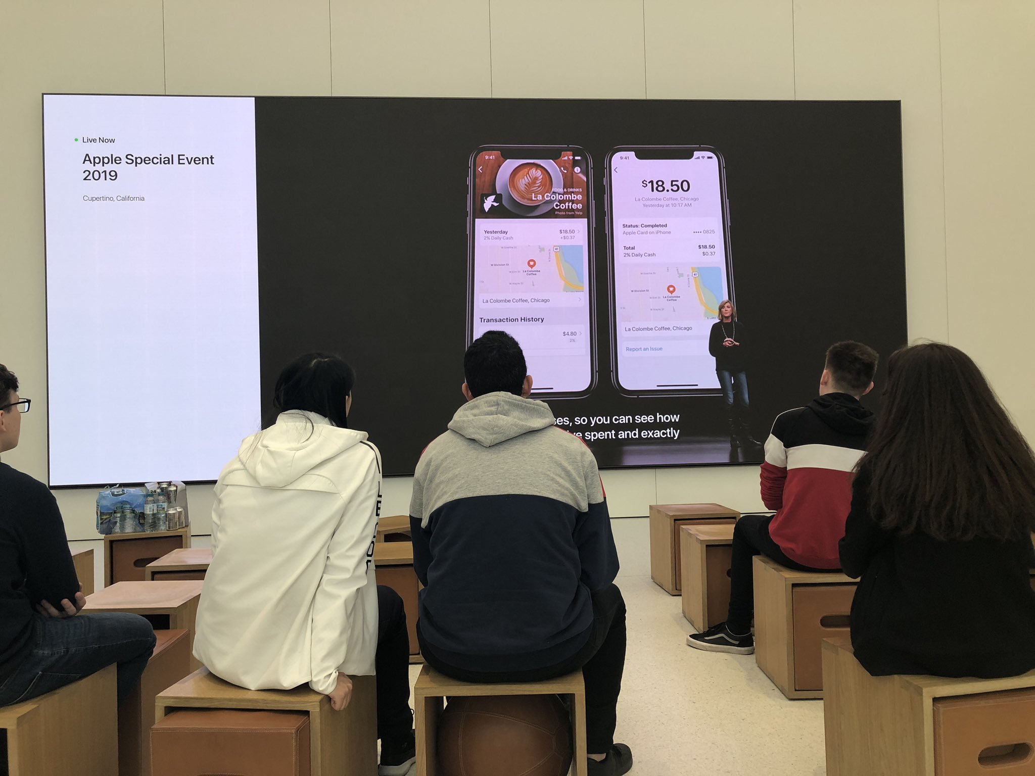Around the world today, Apple fans gathered to hear the latest announcements from Steve Jobs Theater, where the company introduced a wave of new services like Apple TV+, Apple News+, Apple Arcade, and Apple Card. To celebrate the event, Apple hosted livestreams of the keynote at approximately 96 of its retail stores throughout the United States and all over the globe. Store visitors and 9to5Mac readers shared their photos of the experience.