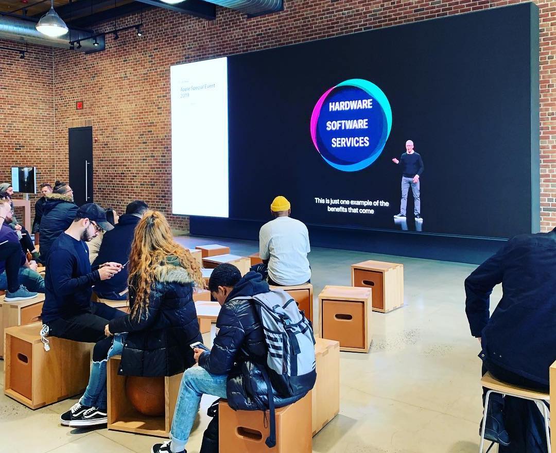 The keynote livestreams are an extension of the Today at Apple program, a series of educational and creative in-store sessions. As more stores are updated with Video Walls and Forums, more people will have the opportunity to watch keynotes with friends in the future.