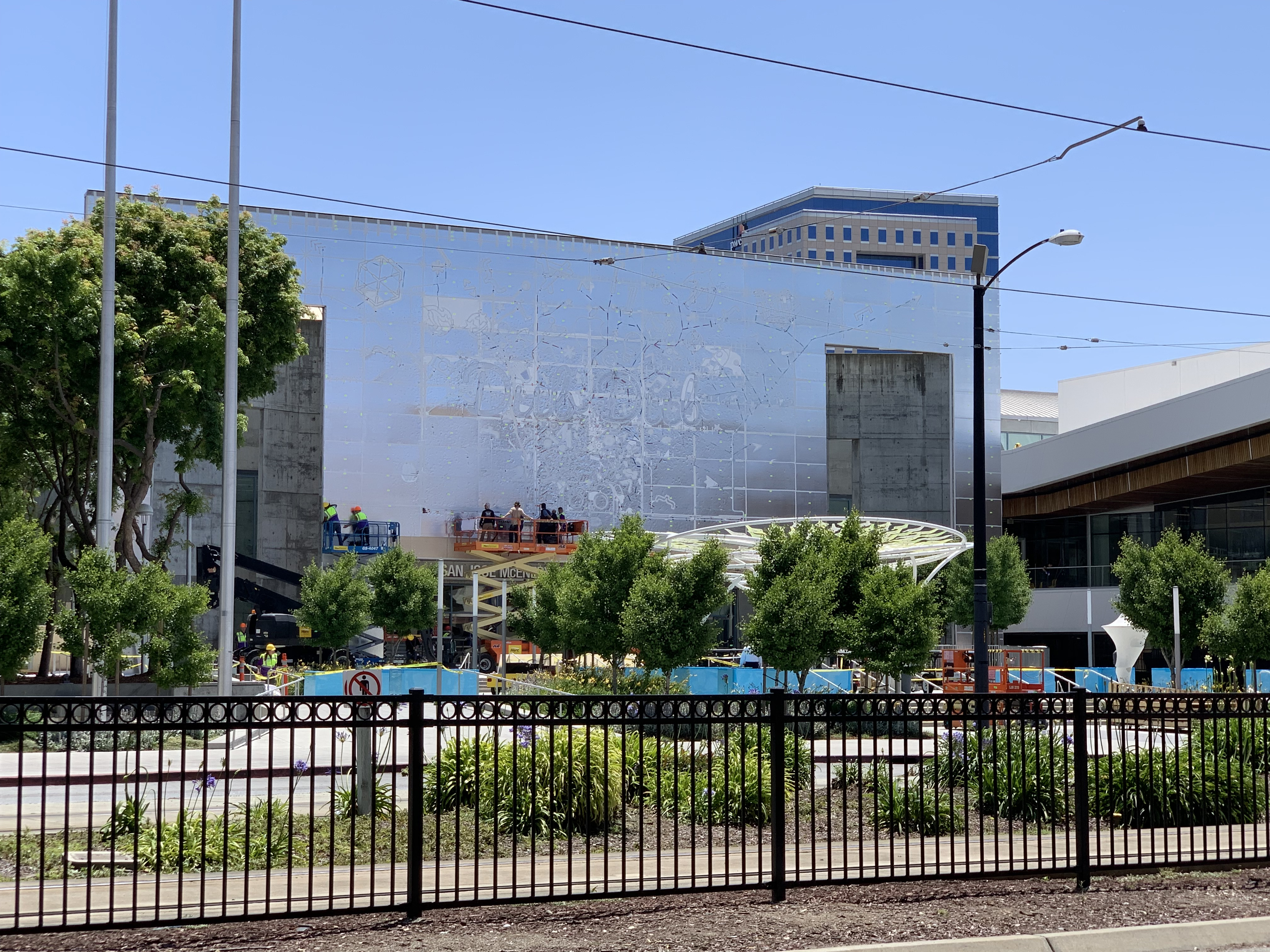 WWDC kicks off next Monday in San Jose, and Apple is busy preparing the McEnery Convention Center for a week of events. One of the most fun traditions — the raising of artwork and decorations — began Tuesday night and has been ongoing since.