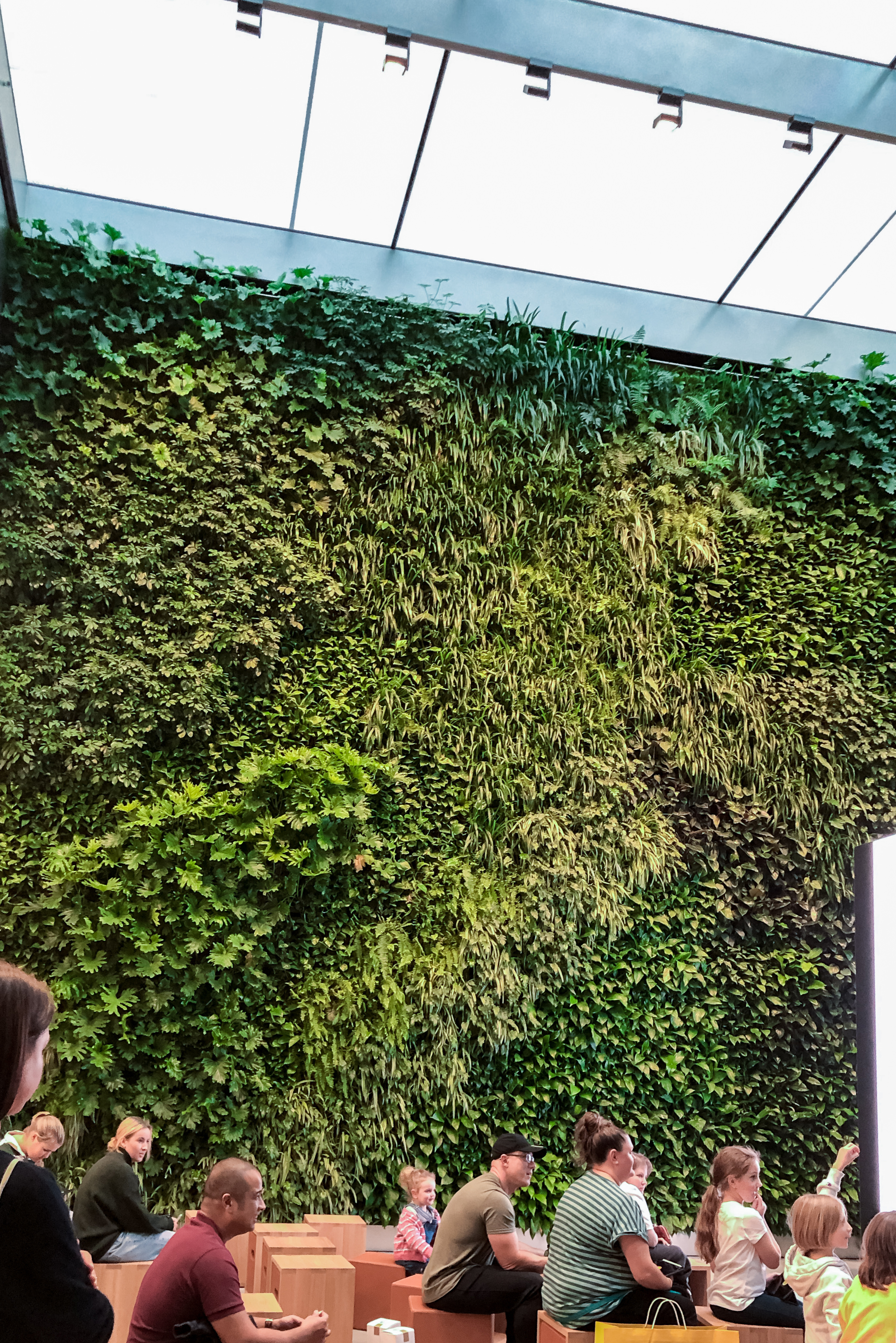 Where else could we see larger than life green wall installations in the future? The design appears to work best in spaces with ample natural light for plants to thrive, but where trees might take away from seating space in the Forum. Washington, D.C.’s Apple Georgetown features a nearly identical layout to Bondi’s store, but is finished with brick walls that may complicate adding irrigation and obscure the store’s architecture. Classic stores in Stanford, Houston, Scottsdale, Minneapolis, Manhasset, and Chicago all offer large skylights and are due for upgrades.