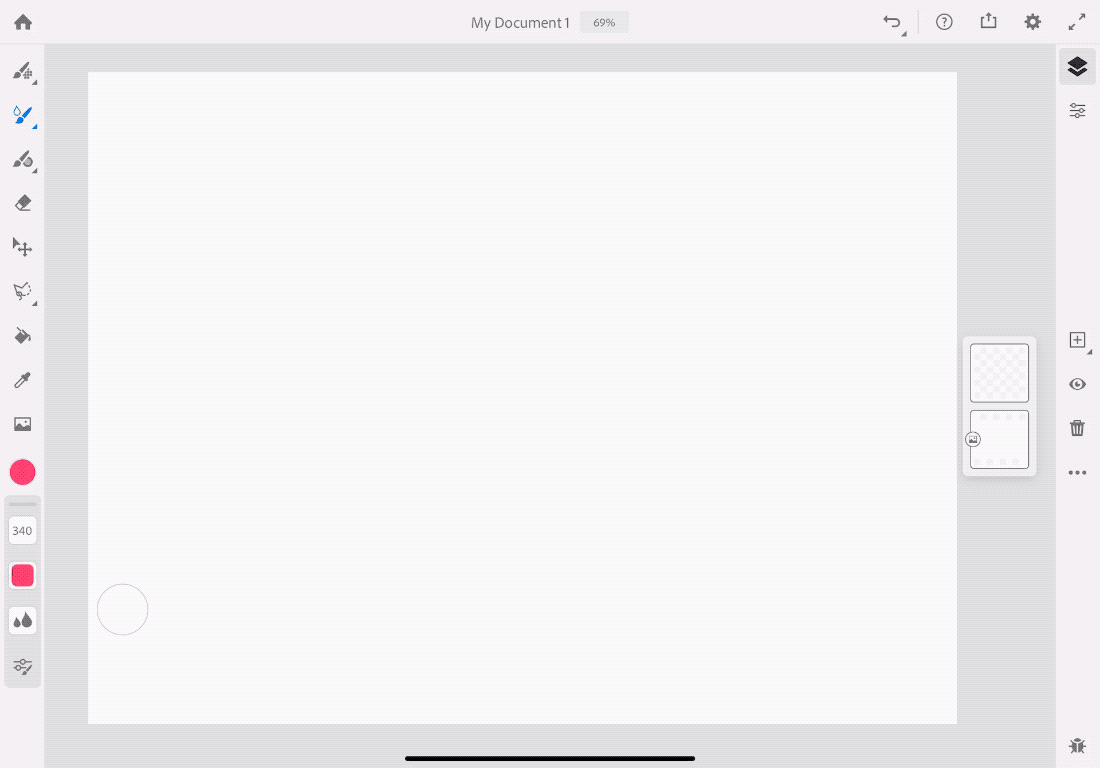 At the same time, Fresco’s UI feels tailored to the iPad with a refined set of tools built for touch. There are no legacy carryover features. A movable Touch Shortcut button borrowed from the upcoming Photoshop on iPad enables quick secondary actions like erasing. Fresco’s brush settings pane can be detached from the main interface, and the layers list can be hidden with a tap. Fullscreen and dark modes are supported.