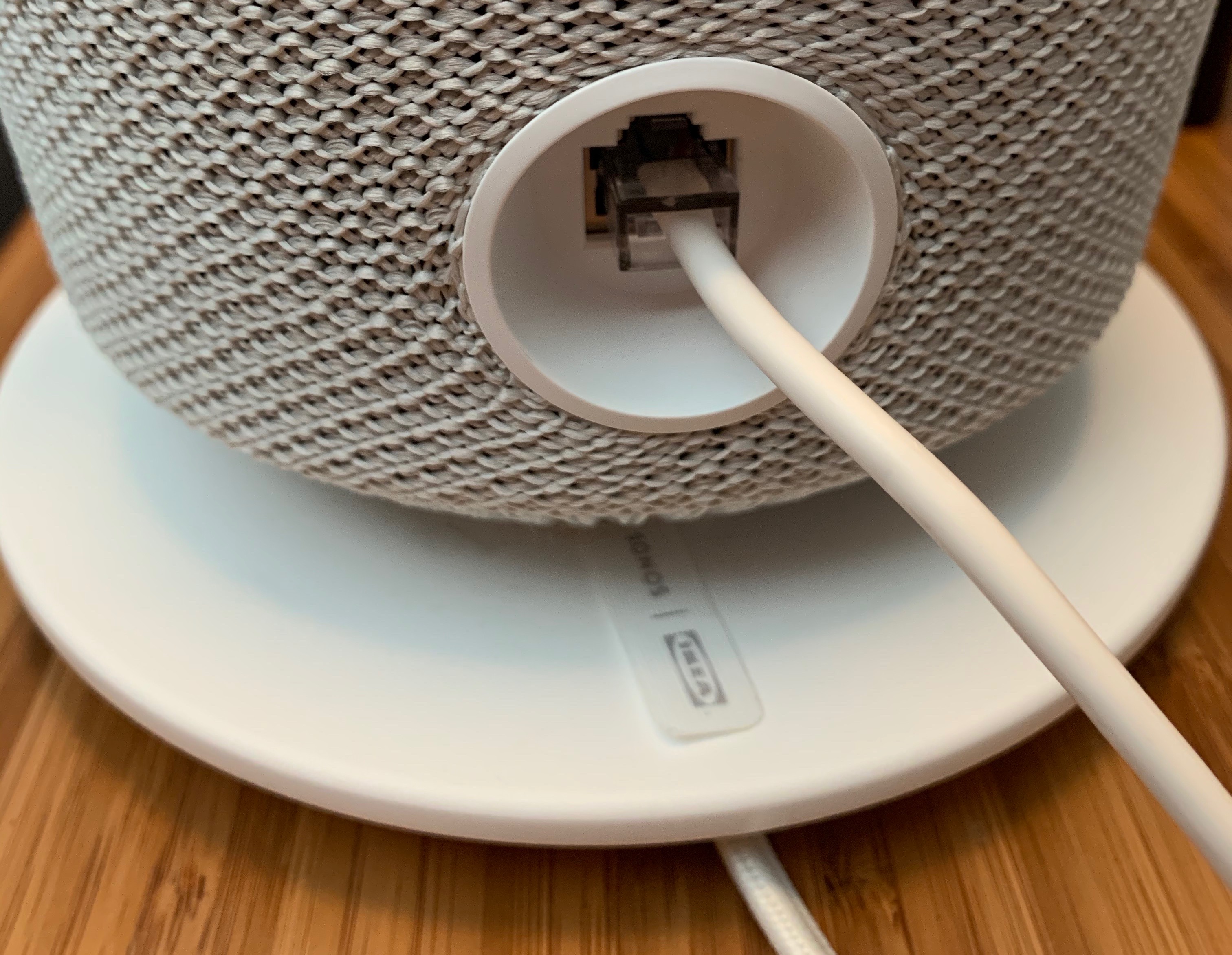 The back of the lamp includes an inset cutout for an Ethernet port for use without Wi-Fi in contrast to Apple’s Wi-Fi-dependent HomePod. An Ethernet port on a table lamp certainly doesn’t help with the furniture-not-speaker illusion, but it’s not an eyesore if you can keep it out of view. Sonos and IKEA also include a removable power cable with a friendly fabric cover.