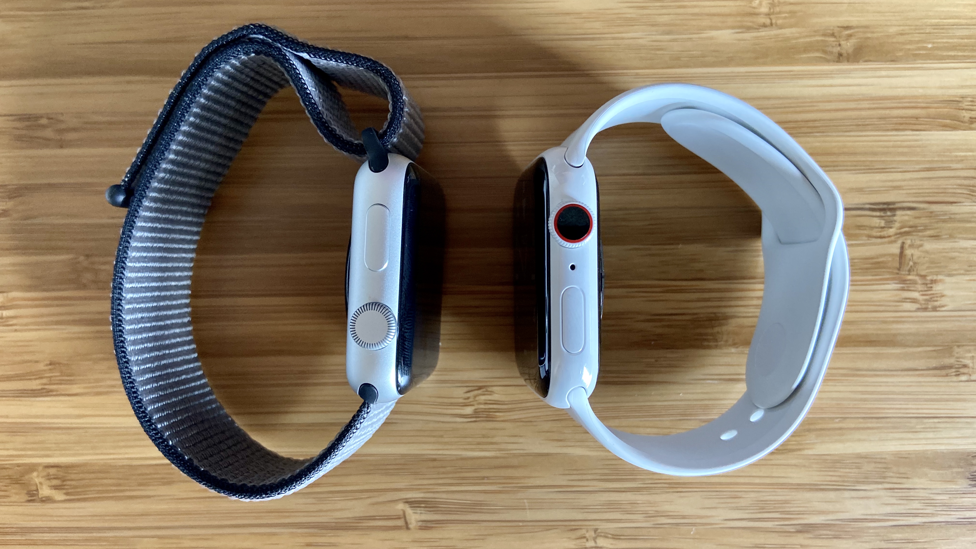 The Digital Crown also has a new look with the ceramic Apple Watch Series 5. The original ceramic model had a black cap inside the white crown, then the second ceramic version shifted to a red cap like other cellular watches. The new version — which includes an electrical heart sensor for the ECG app — has a more subtle black cap with a red accent ring.