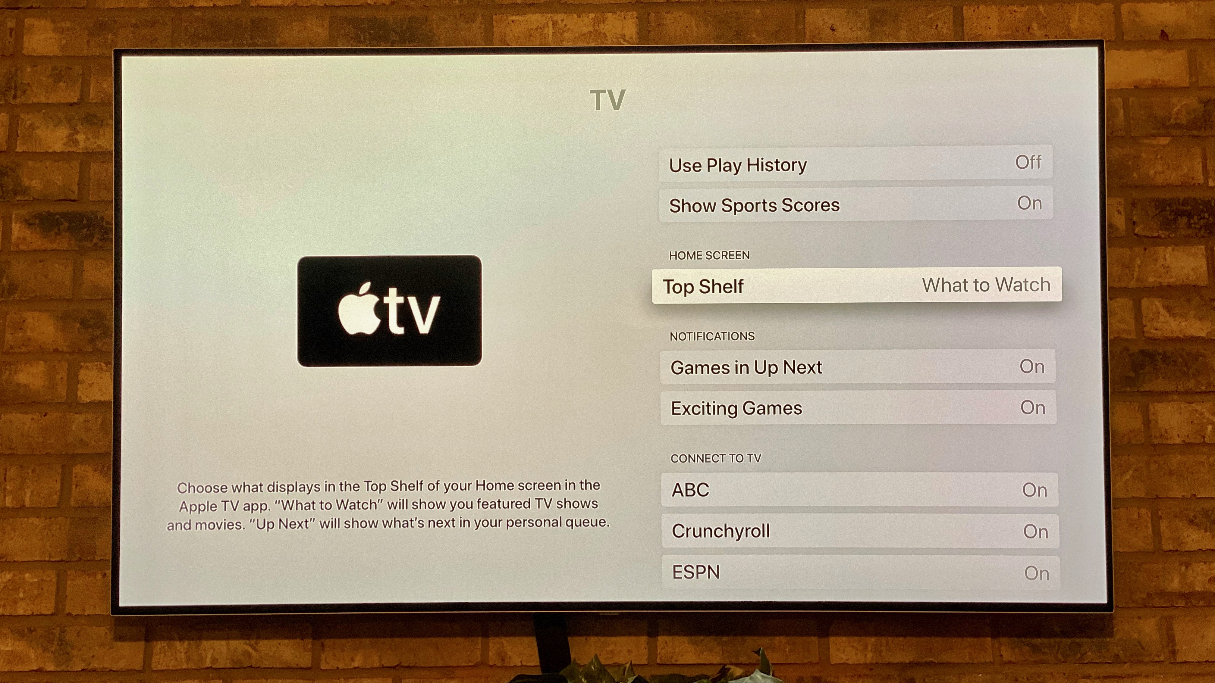 The new setting is under the ‘Home Screen’ section. You can switch between showing ‘What to Watch’ or ‘Up Next’ in the Top Shelf. Click the remote to switch between the modes.